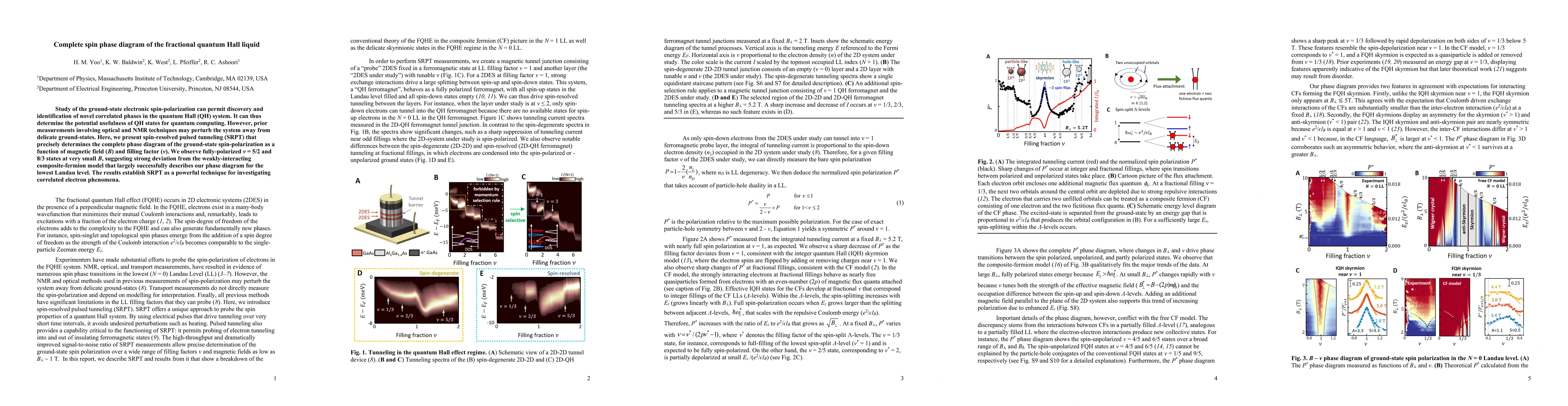Study of the ground-state electronic spin-polarization can permit discovery and identification of novel correlated phases in the quantum Hall (QH) system. It can thus determine the potential usefulness of QH states for quantum computing. However, prior measurements involving optical and NMR techniques may perturb the system away from delicate ground-states. Here, we present spin-resolved pulsed tunneling (SRPT) that precisely determines the complete phase diagram of the ground-state spin-polarization as a function of magnetic field (B) and filling factor ({\nu}). We observe fully-polarized {\nu} = 5/2 and 8/3 states at very small B, suggesting strong deviation from the weakly-interacting composite-fermion model that largely successfully describes our phase diagram for the lowest Landau level. The results establish SRPT as a powerful technique for investigating correlated electron phenomena.