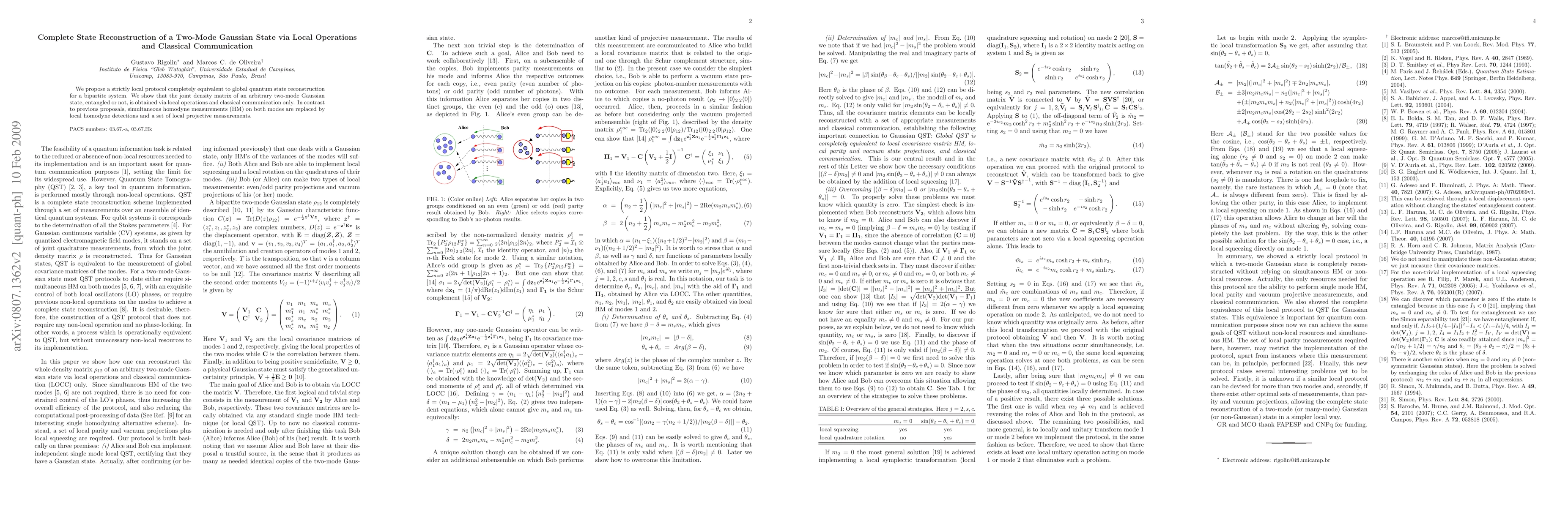 This paper proposes a local quantum tomography protocol that reconstructs the complete state of a two-mode Gaussian system using only local operations and classical communication, replacing simultaneous homodyne measurements with local homodyne detections and local projective measurements.