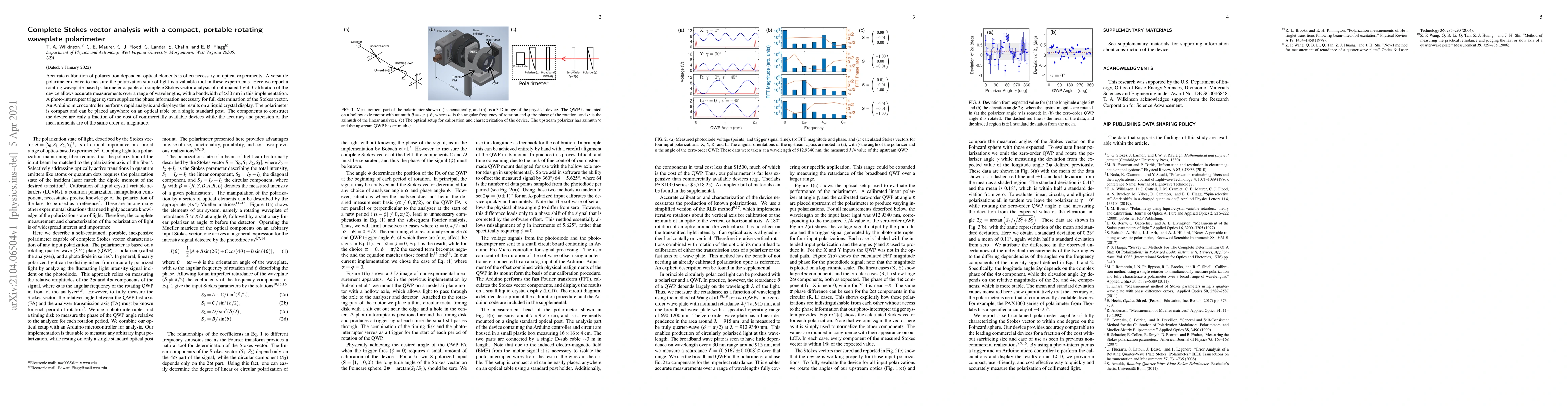 This paper describes a compact, portable rotating waveplate polarimeter for complete Stokes vector analysis of light, enabling accurate calibration of polarization-dependent optical elements. The device features a cost-effective design, comparable accuracy to commercial devices, and can be easily deployed on an optical table.