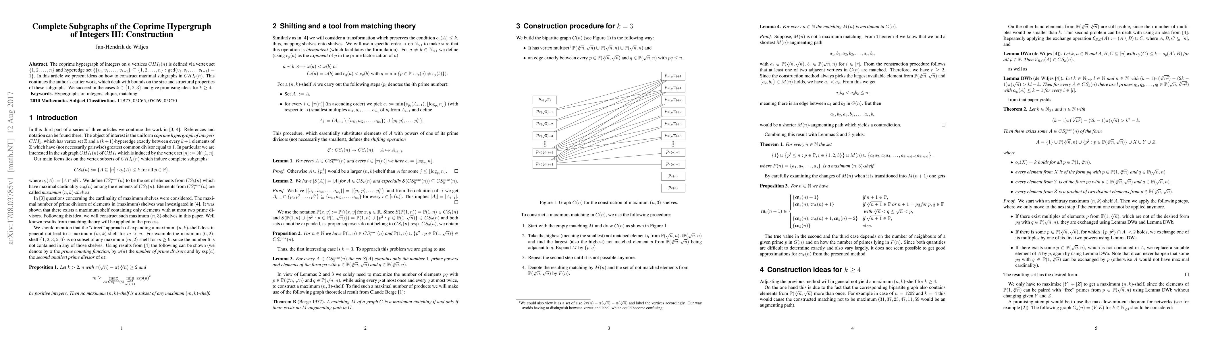 Researchers present a method to construct maximal subgraphs in the coprime hypergraph of integers for k=1,2,3, providing promising ideas for larger values of k.