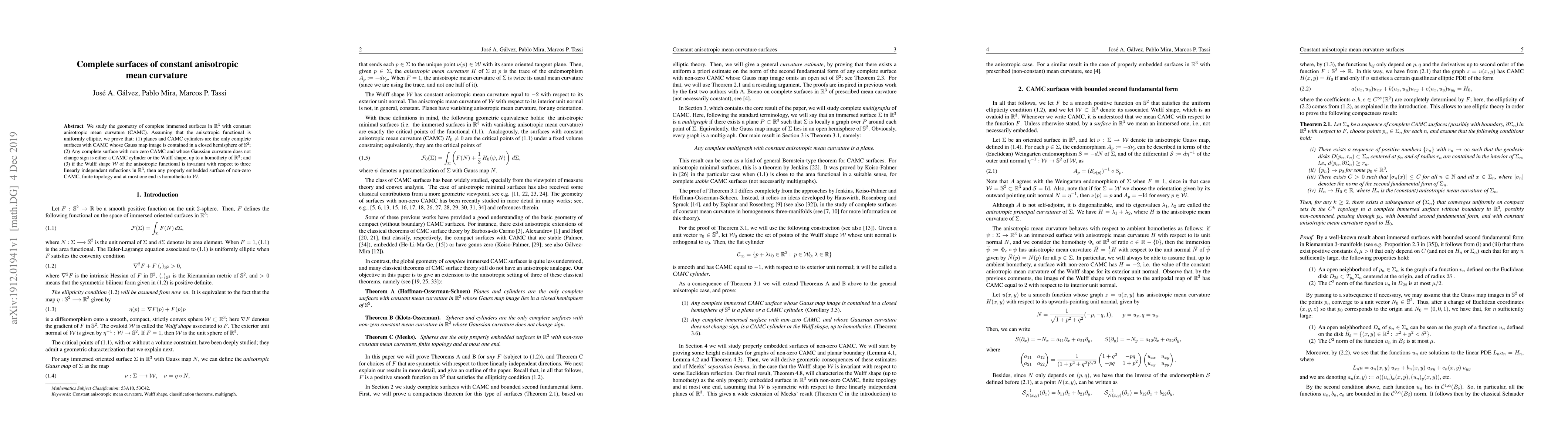 The paper presents a comprehensive analysis using advanced geometric techniques, including stability estimates and variational methods, to classify surfaces based on their anisotropic mean curvature properties.