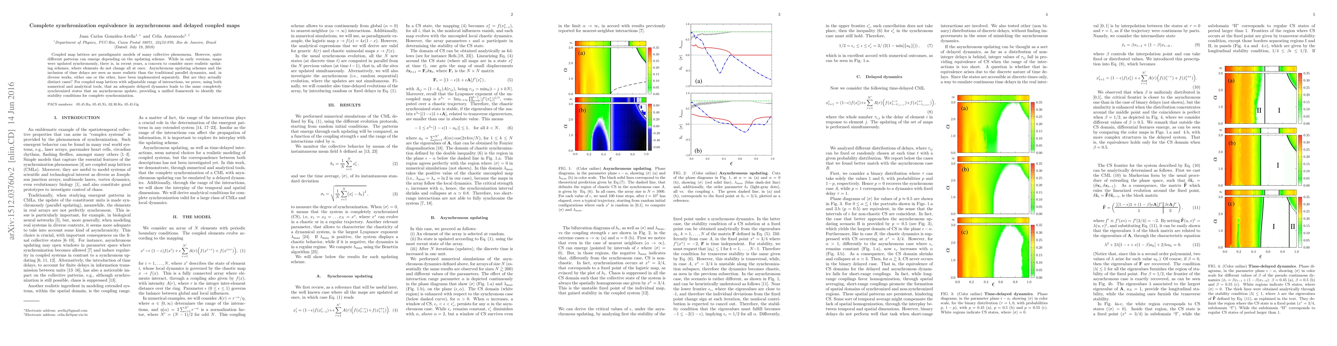 This paper proves that delayed asynchronous updating schemes in coupled map lattices lead to the same completely synchronized states as purely asynchronous updates, offering a unified framework for identifying stability conditions for complete synchronization. Both numerical and analytical tools are employed to demonstrate this equivalence.