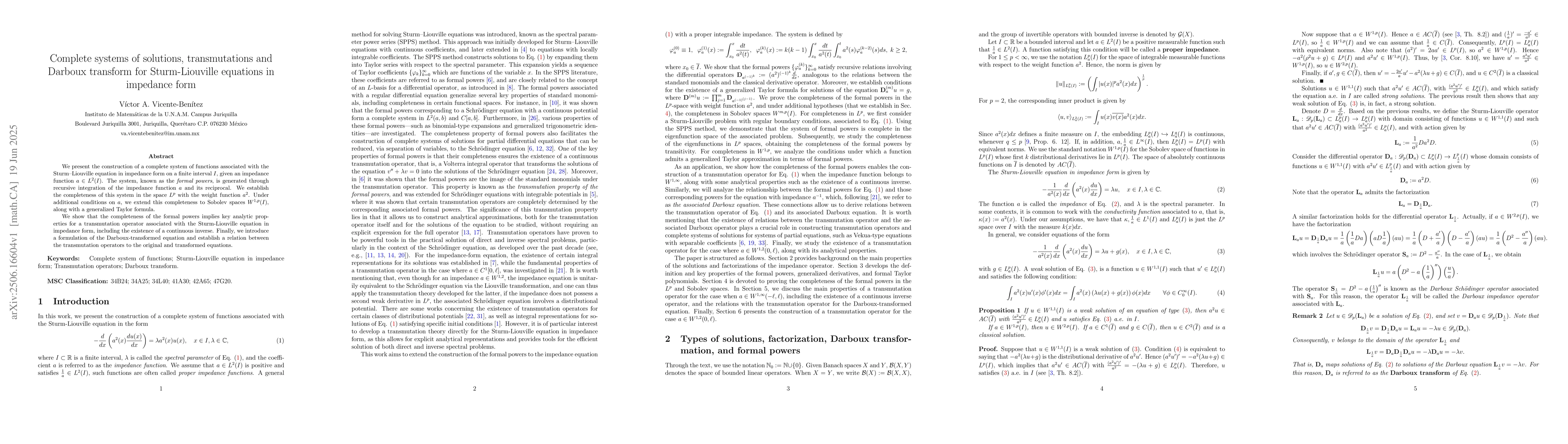 We present the construction of a complete system of functions associated with the Sturm-Liouville equation in impedance form on a finite interval $I$, given an impedance function $a\in L^2(I)$. The system, known as the formal powers, is generated through recursive integration of the impedance function $a$ and its reciprocal. We establish the completeness of this system in the space $L^p$ with the weight function $a^2$. Under additional conditions on $a$, we extend the completeness of this completeness to Sobolev spaces $W^{1,p}(I)$, along with a generalized Taylor formula. We show that the completeness of the formal powers implies key analytic properties for a transmutation operator associated with the Sturm-Liouville equation in impedance form, including the existence of a continuous inverse. Finally, we introduce a formulation of the Darboux-transformed equation and establish a relation between the transmutation operators to the original and transformed equations.