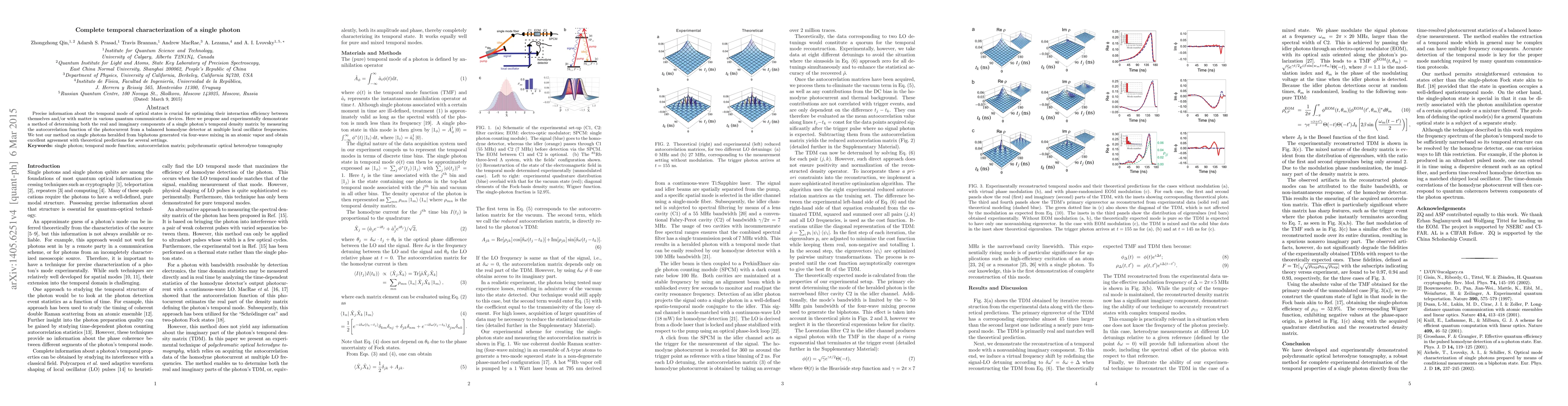 Precise information about the temporal mode of optical states is crucial for optimizing their interaction efficiency between themselves and/or with matter in various quantum communication devices. Here we propose and experimentally demonstrate a method of determining both the real and imaginary components of a single photon's temporal density matrix by measuring the autocorrelation function of the photocurrent from a balanced homodyne detector at multiple local oscillator frequencies. We test our method on single photons heralded from biphotons generated via four-wave mixing in an atomic vapor and obtain excellent agreement with theoretical predictions for several settings.