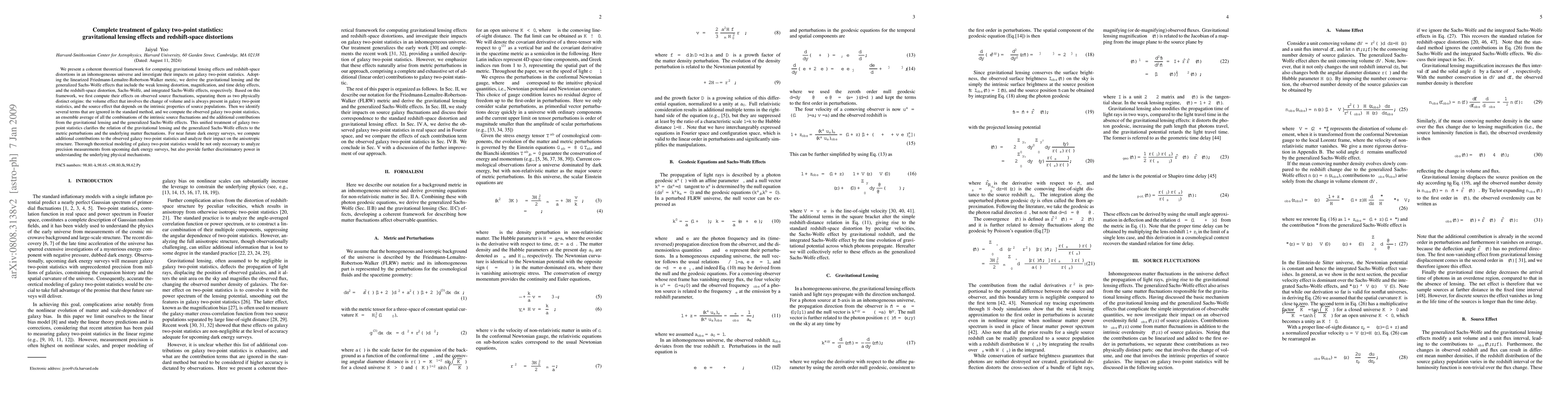 This paper develops a comprehensive theoretical framework for calculating gravitational lensing effects and redshift-space distortions in an inhomogeneous universe, clarifying their impacts on galaxy two-point statistics and identifying additional terms overlooked in standard methods. It also analyzes the implications for future dark energy surveys.