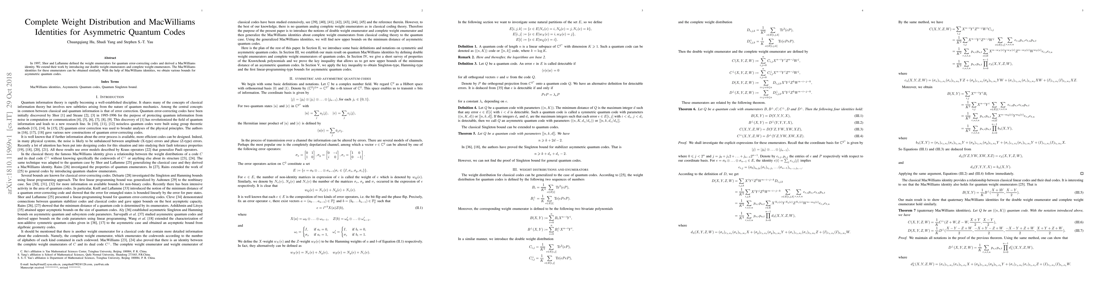 This paper extends the foundational work on quantum error-correcting codes by introducing double and complete weight enumerators, and deriving corresponding MacWilliams identities. The new identities enable the establishment of various bounds for asymmetric quantum codes.