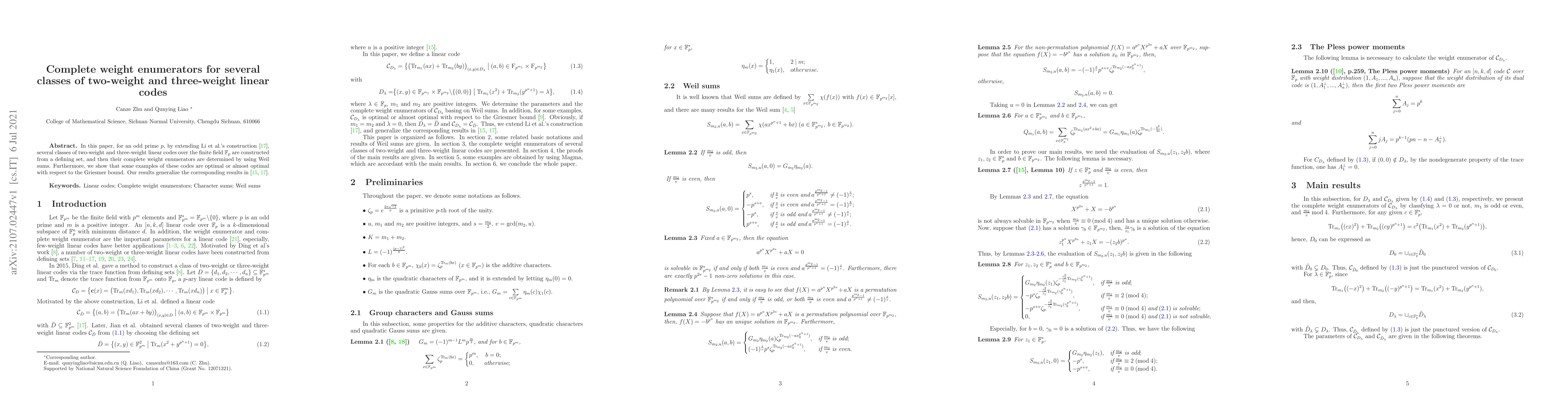 This paper constructs several classes of two-weight and three-weight linear codes over $\mathbb{F}_p$ using an extended method from Li et al., determining their complete weight enumerators via Weil sums. The authors demonstrate that some of these codes are optimal or near-optimal concerning the Griesmer bound.