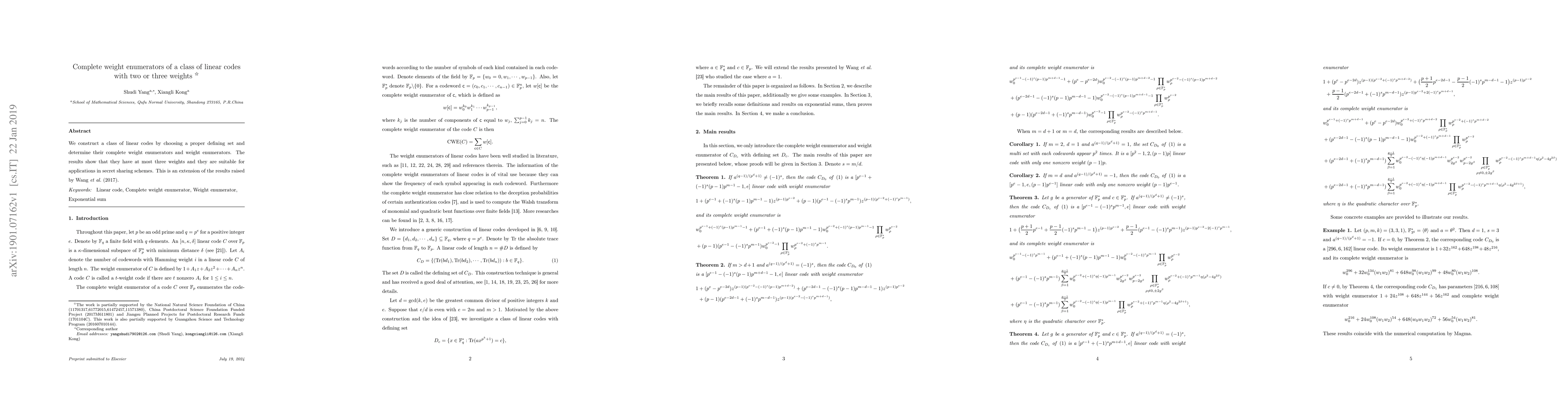 This paper constructs a class of linear codes with either two or three weights using a specific defining set, determining their complete weight enumerators. The findings indicate these codes are optimal for secret sharing schemes and extend previous results from Wang et al. (2017).