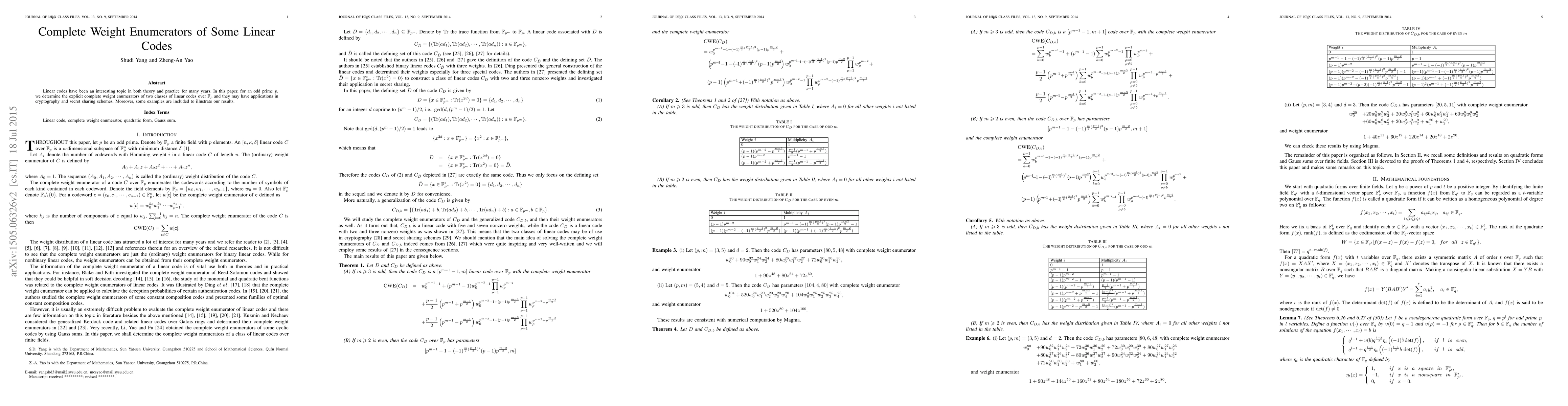 The paper presents detailed derivations of complete weight enumerators for two classes of linear codes using quadratic forms and Gauss sums over finite fields.