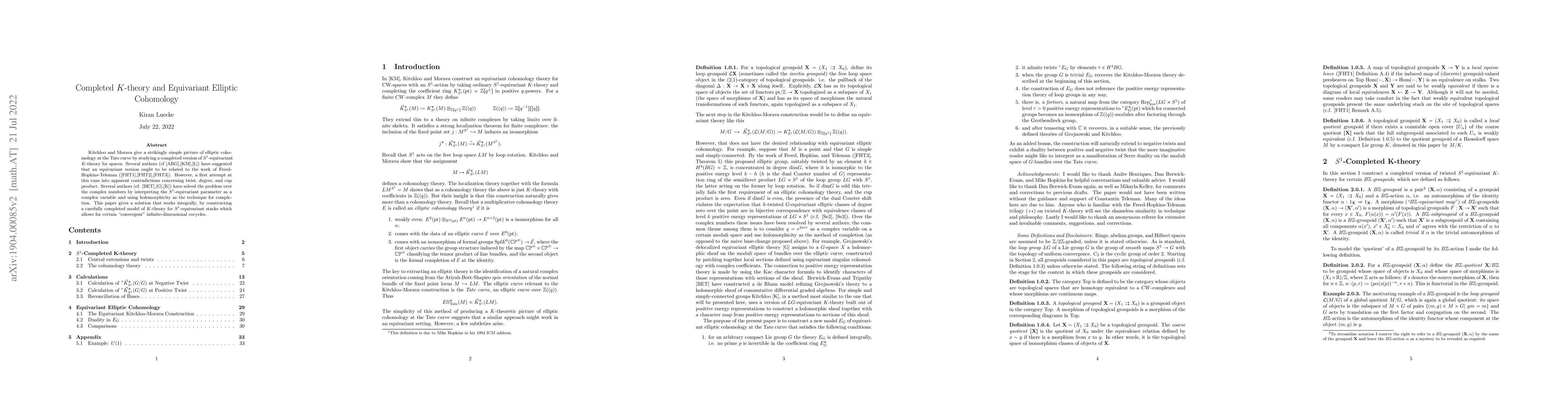 This paper by Kitchloo and Morava presents a completed version of $S^1$-equivariant $K$-theory for spaces, offering a simpler picture of elliptic cohomology at the Tate curve. It resolves previous contradictions in equivariant approaches by constructing a model that works integrally, accommodating "convergent" infinite-dimensional cocycles.
