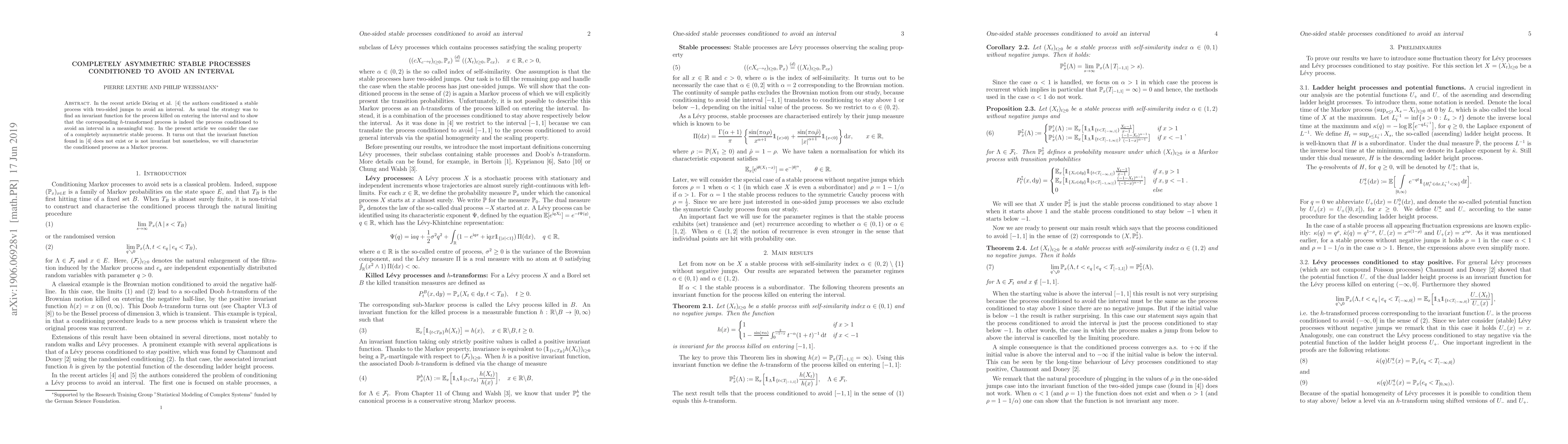 This paper investigates the conditioning of a completely asymmetric stable process to avoid a specified interval, demonstrating that while the invariant function from previous work does not apply, the conditioned process can still be characterized as a Markov process.