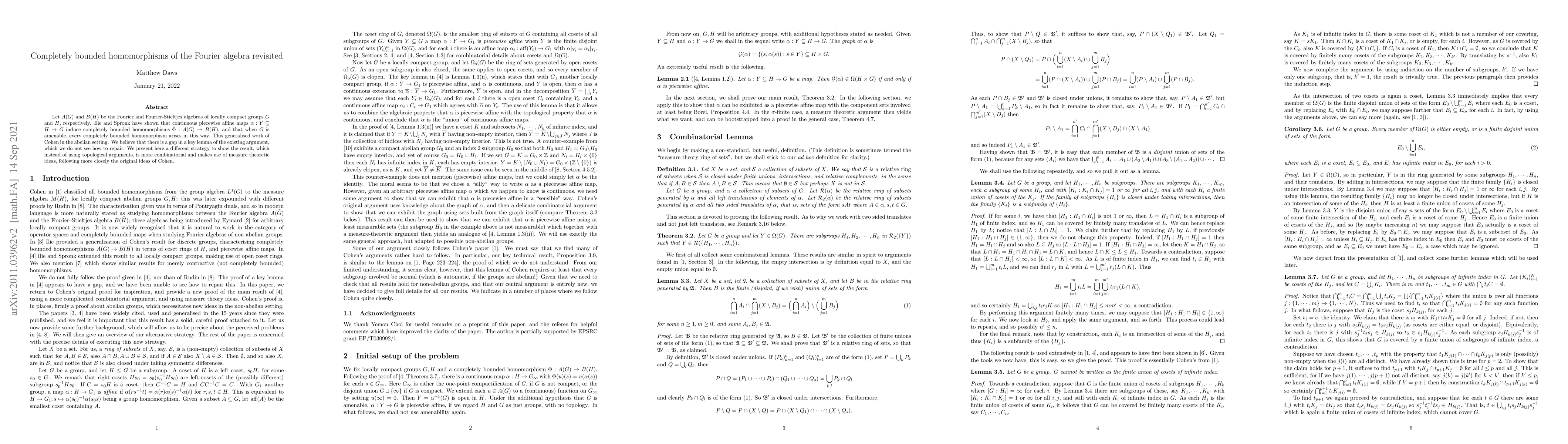 The paper presents a new strategy for proving that completely bounded homomorphisms of Fourier algebras arise from piecewise affine maps, using combinatorial and measure-theoretic ideas, as opposed to the topological arguments in previous work.