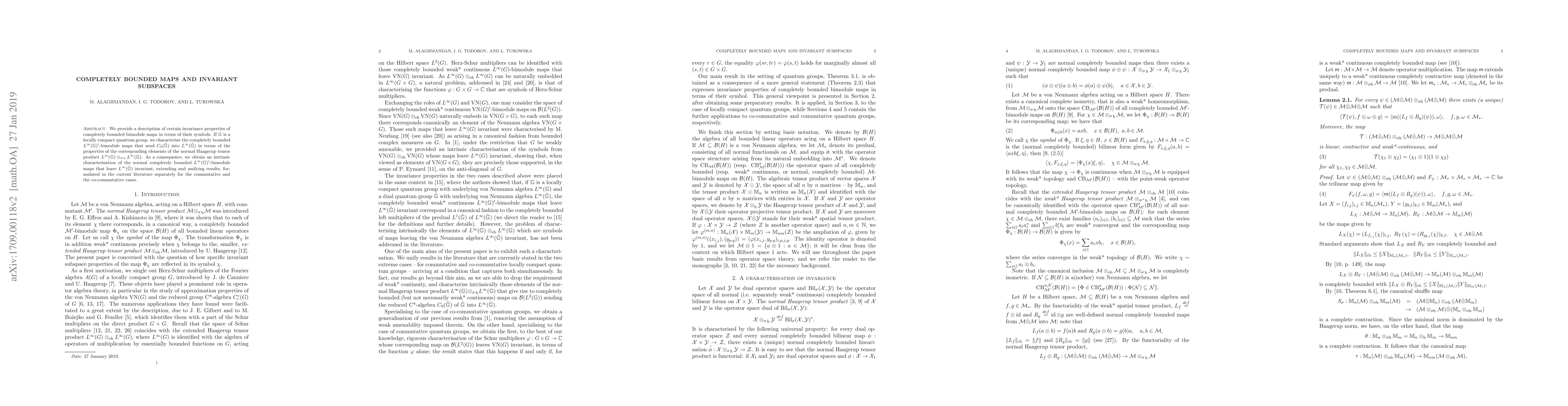 We provide a description of certain invariance properties of completely bounded bimodule maps in terms of their symbols. If $\mathbb{G}$ is a locally compact quantum group, we characterise the completely bounded $L^{\infty}(\mathbb{G})'$-bimodule maps that send $C_0(\hat{\mathbb{G}})$ into $L^{\infty}(\hat{\mathbb{G}})$ in terms of the properties of the corresponding elements of the normal Haagerup tensor product $L^{\infty}(\mathbb{G}) \otimes_{\sigma{\rm h}} L^{\infty}(\mathbb{G})$. As a consequence, we obtain an intrinsic characterisation of the normal completely bounded $L^{\infty}(\mathbb{G})'$-bimodule maps that leave $L^{\infty}(\hat{\mathbb{G}})$ invariant, extending and unifying results, formulated in the current literature separately for the commutative and the co-commutative cases.