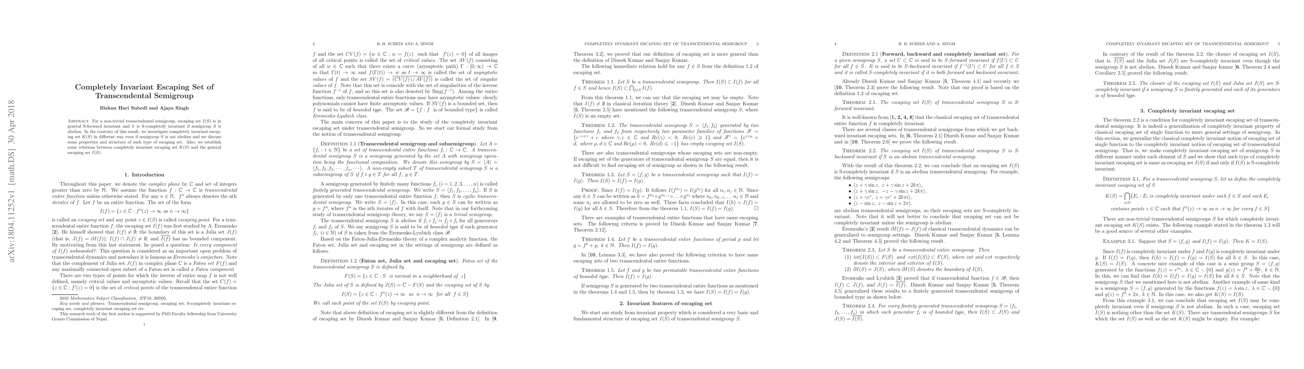 This paper explores the concept of a completely invariant escaping set K(S) in transcendental semigroups, even when the semigroup is not abelian, and discusses its properties and structure. It also establishes relationships between K(S) and the general escaping set I(S).
