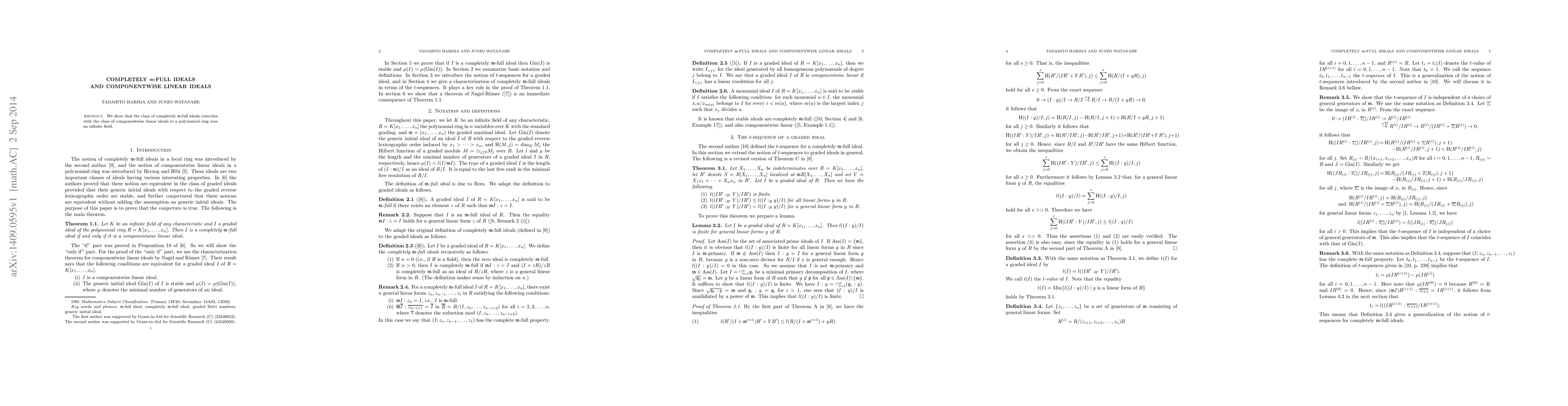 Summary: The paper demonstrates that completely m-full ideals in polynomial rings over infinite fields are equivalent to componentwise linear ideals, highlighting their identical structural properties.