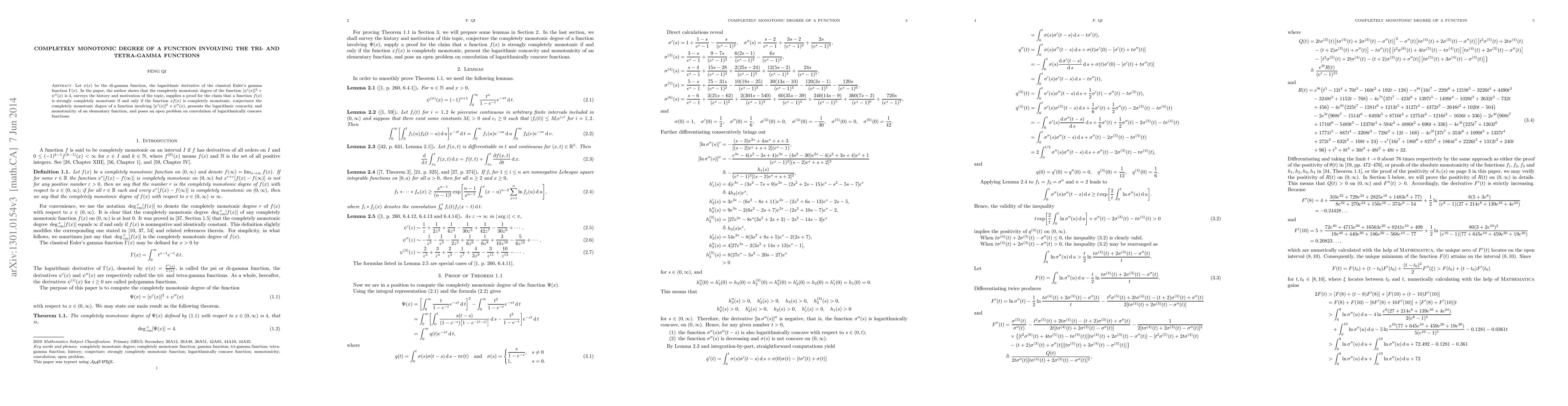 Summary: The paper investigates the completely monotonic degree of a function involving tri- and tetra-gamma functions, proving that $[\psi'(x)]^2+\psi''(x)$ has a completely monotonic degree of 4. It also explores related properties and poses an open problem regarding the convolution of logarithmically concave functions.