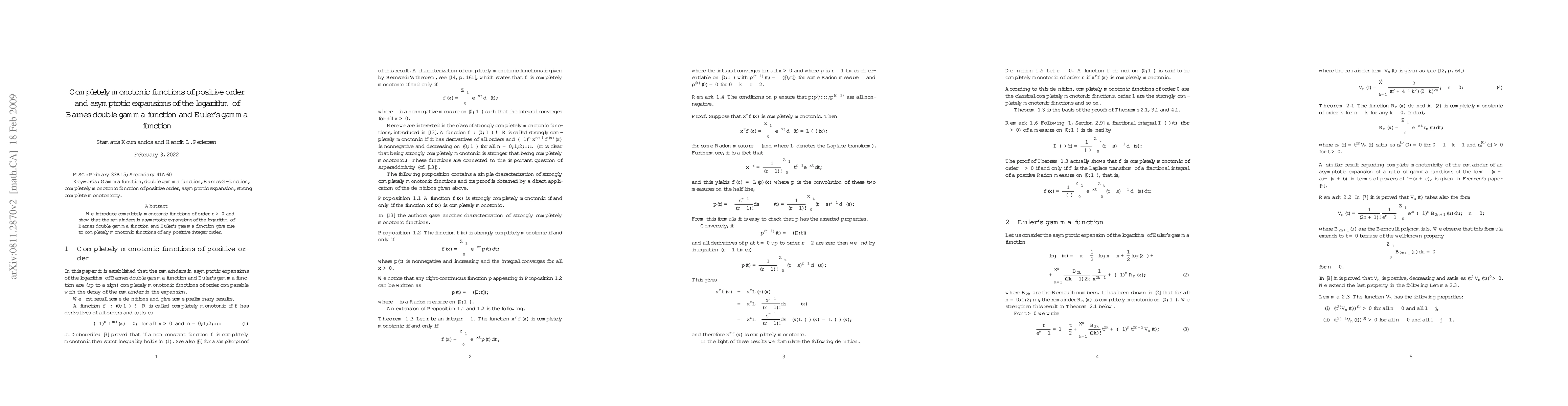 Researchers introduced a method to create completely monotonic functions of positive order from asymptotic expansions of logarithms of special mathematical functions, the Barnes double gamma function and Euler's gamma function.