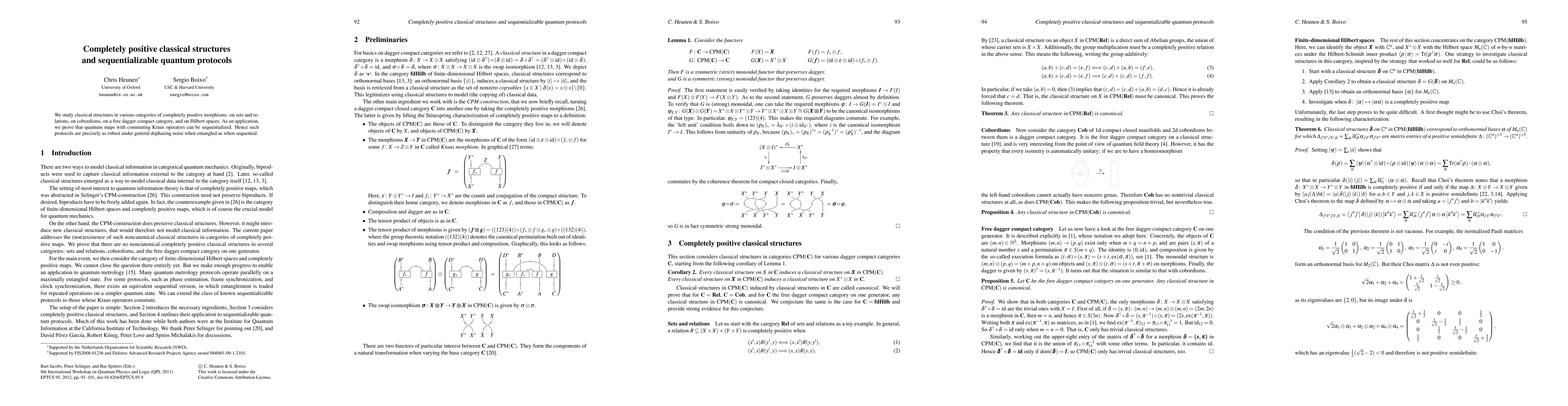 We study classical structures in various categories of completely positive morphisms: on sets and relations, on cobordisms, on a free dagger compact category, and on Hilbert spaces. As an application, we prove that quantum maps with commuting Kraus operators can be sequentialized. Hence such protocols are precisely as robust under general dephasing noise when entangled as when sequential.