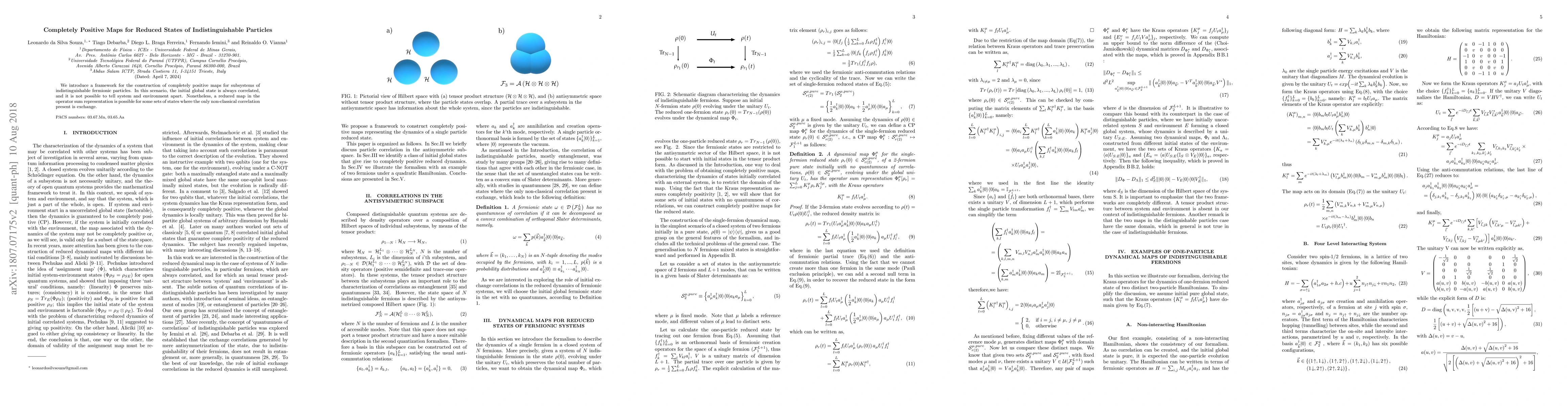 We introduce a framework for the construction of completely positive maps for subsystems of indistinguishable fermionic particles. In this scenario, the initial global state is always correlated, and it is not possible to tell system and environment apart. Nonetheless, a reduced map in the operator sum representation is possible for some sets of states where the only non-classical correlation present is exchange.