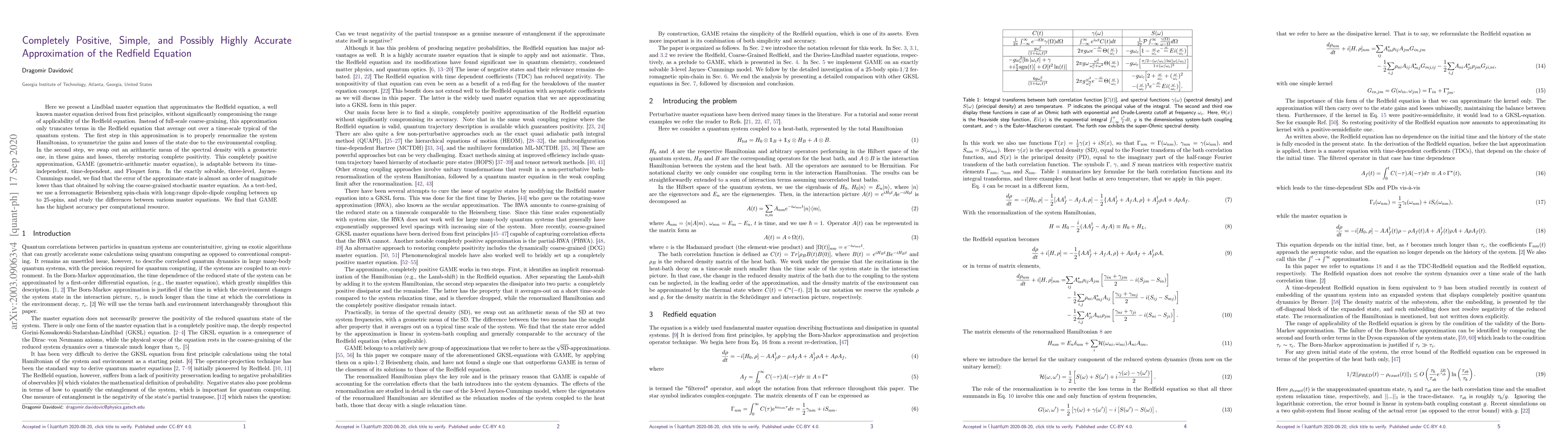 This paper introduces a new Lindblad master equation, called GAME, to approximate the Redfield equation with minimal loss of accuracy. GAME truncates negligible terms and restores complete positivity, showing significantly lower error compared to coarse-grained stochastic methods, and demonstrating high accuracy relative to computational cost in models like the three-level Jaynes-Cummings model and ferromagnetic Heisenberg spin chains.
