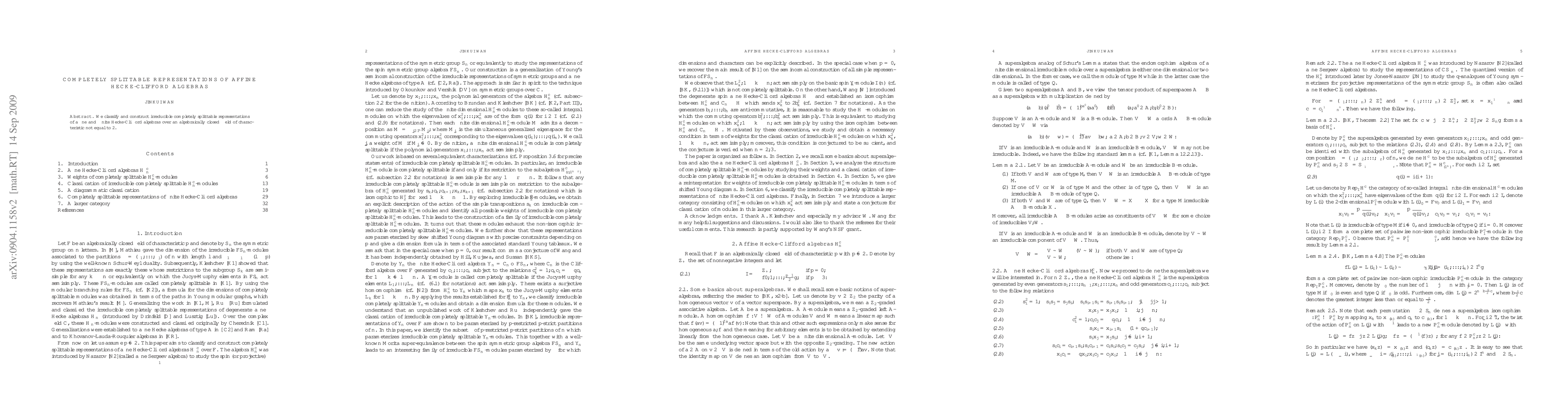 Summary: This paper classifies and constructs irreducible completely splittable representations of affine and finite Hecke-Clifford algebras over fields of characteristic not equal to 2, providing a comprehensive framework for understanding these algebraic structures.