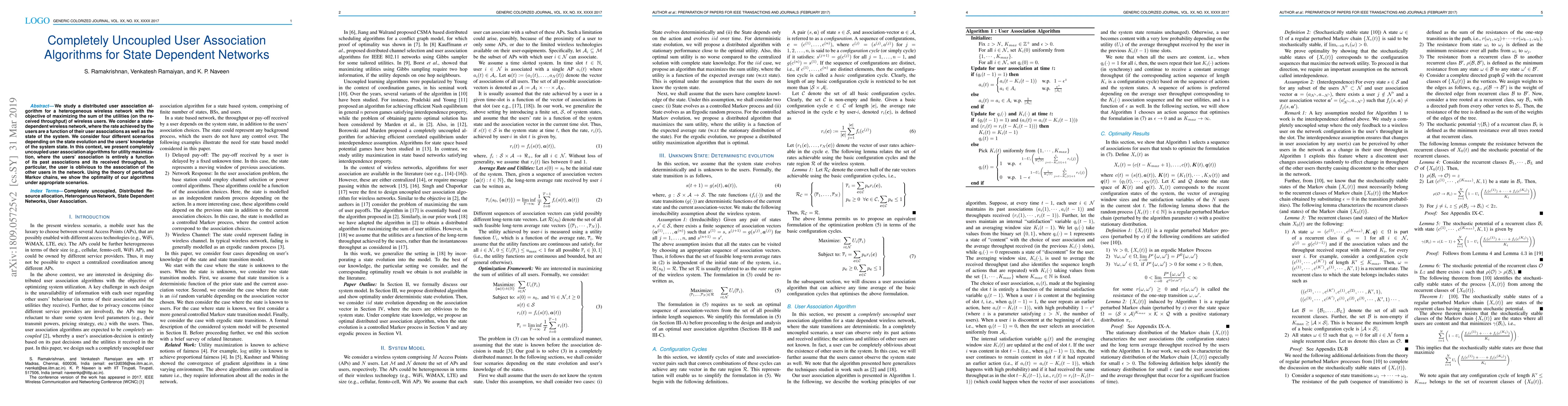 Researchers developed algorithms to optimize user association in wireless networks based on past associations and received throughput, showing optimality under specific scenarios.