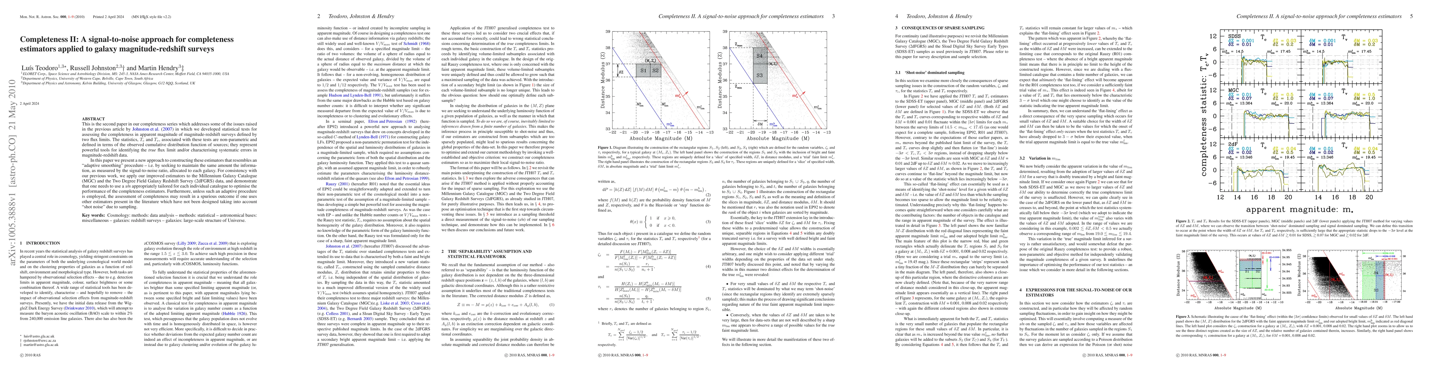 This is the second paper in our completeness series which addresses some of the issues raised in the previous article by Johnston, Teodoro & Hendry (2007) in which we developed statistical tests for assessing the completeness in apparent magnitude of magnitude-redshift surveys defined by two flux limits. The statistics, Tc and Tv, associated with these tests are non-parametric and defined in terms of the observed cumulative distribution function of sources; they represent powerful tools for identifying the true flux limit and/or characterising systematic errors in magnitude-redshift data. In this paper we present a new approach to constructing these estimators that resembles an "adaptive smoothing" procedure - i.e. by seeking to maintain the same amount the information, as measured by the signal-to-noise ratio, allocated to each galaxy. For consistency with our previous work, we apply our improved estimators to the Millennium Galaxy Catalogue (MGC) and the Two Degree Field Galaxy Redshift Survey (2dFGRS) data, and demonstrate that one needs to use a signal-to-noise appropriately tailored for each individual catalogue to optimise the performance of the completeness estimators. Furthermore, unless such an adaptive procedure is employed, the assessment of completeness may result in a spurious outcome if one uses other estimators present in the literature which have not been designed taking into account "shot noise" due to sampling.