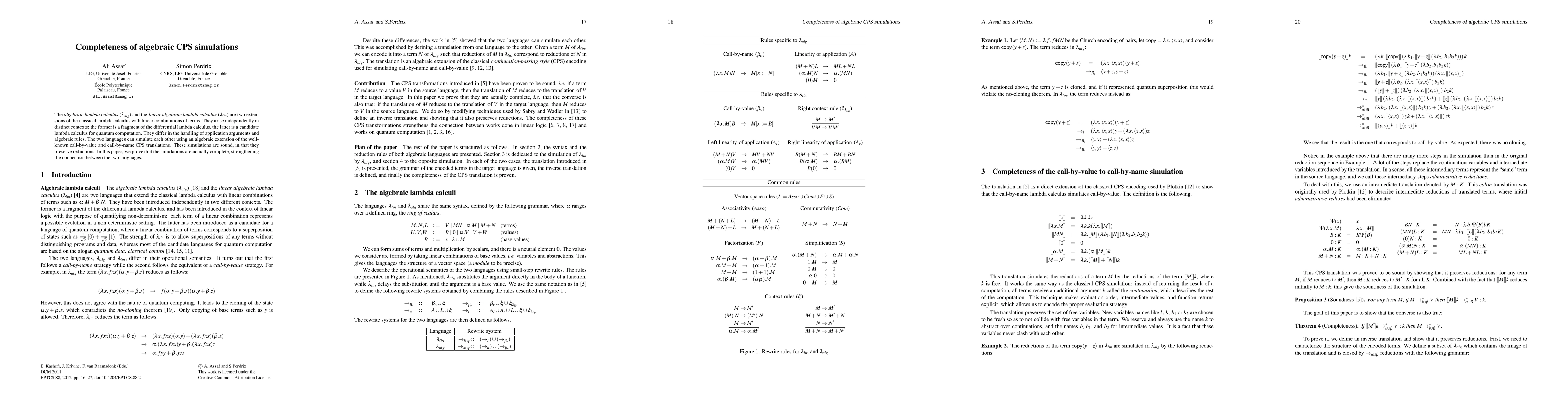 The algebraic lambda calculus and the linear algebraic lambda calculus are two extensions of the classical lambda calculus with linear combinations of terms. They arise independently in distinct contexts: the former is a fragment of the differential lambda calculus, the latter is a candidate lambda calculus for quantum computation. They differ in the handling of application arguments and algebraic rules. The two languages can simulate each other using an algebraic extension of the well-known call-by-value and call-by-name CPS translations. These simulations are sound, in that they preserve reductions. In this paper, we prove that the simulations are actually complete, strengthening the connection between the two languages.