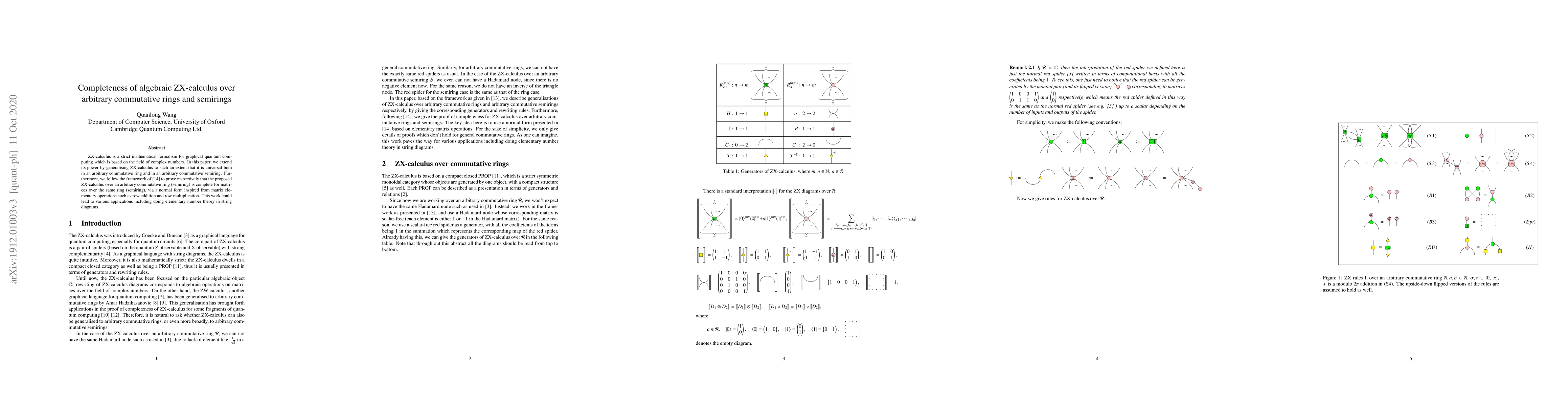 This paper generalizes ZX-calculus to commutative rings and semirings, proving its completeness for matrices over these structures using a normal form based on elementary matrix operations. The extension could facilitate applications in quantum computing and elementary number theory through string diagrams.