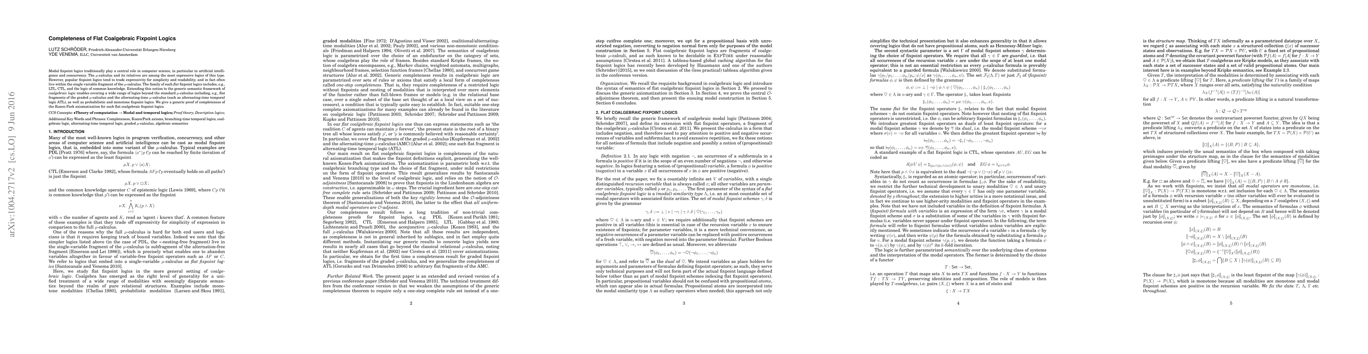 The paper presents a generic proof of completeness for the Kozen-Park axiomatization of flat coalgebraic fixpoint logics, extending expressive power beyond traditional fixpoint logics like LTL and CTL to include probabilistic and monotone logics. This work aims to unify and enhance the expressiveness of various flat fixpoint logics within a coalgebraic framework.
