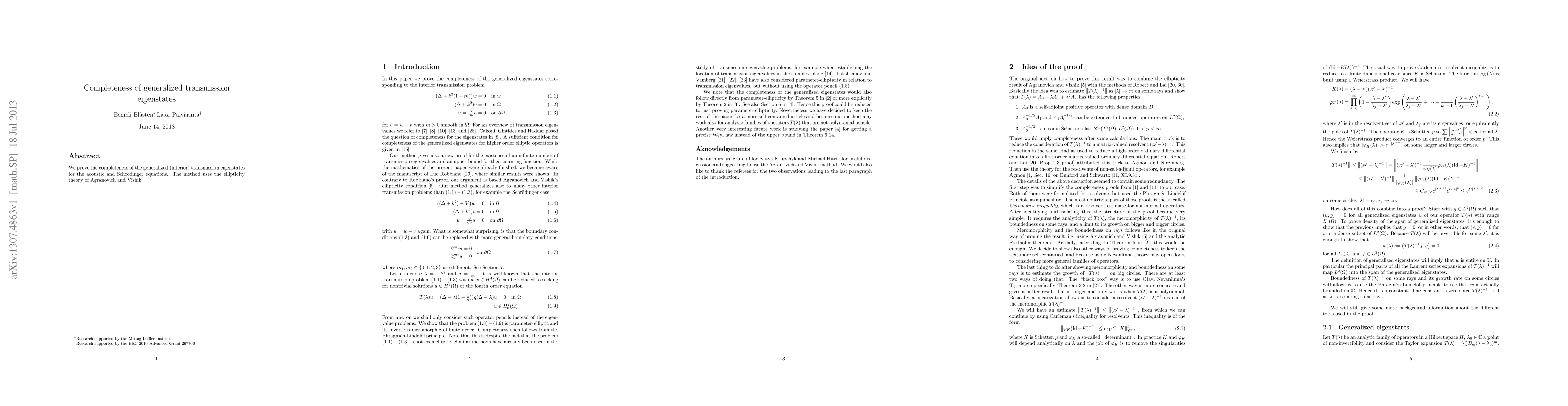 Researchers prove the completeness of generalized transmission eigenstates for acoustic and Schr"odinger equations using ellipticity theory, with implications for understanding wave propagation and potential applications in fields like physics and engineering.