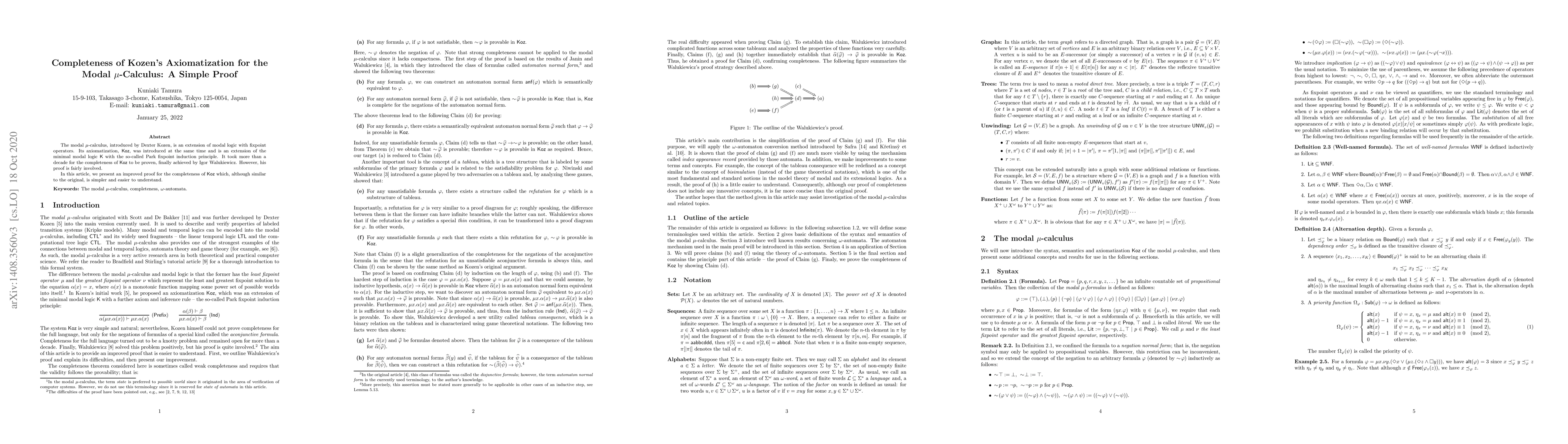 This paper presents a simplified proof for the completeness of Kozen's axiomatization of the modal mu-calculus, an extension of modal logic with fixpoint operators, making the involved proof more accessible and understandable compared to previous work. Keywords: modal mu-calculus, completeness, omega-automata.
