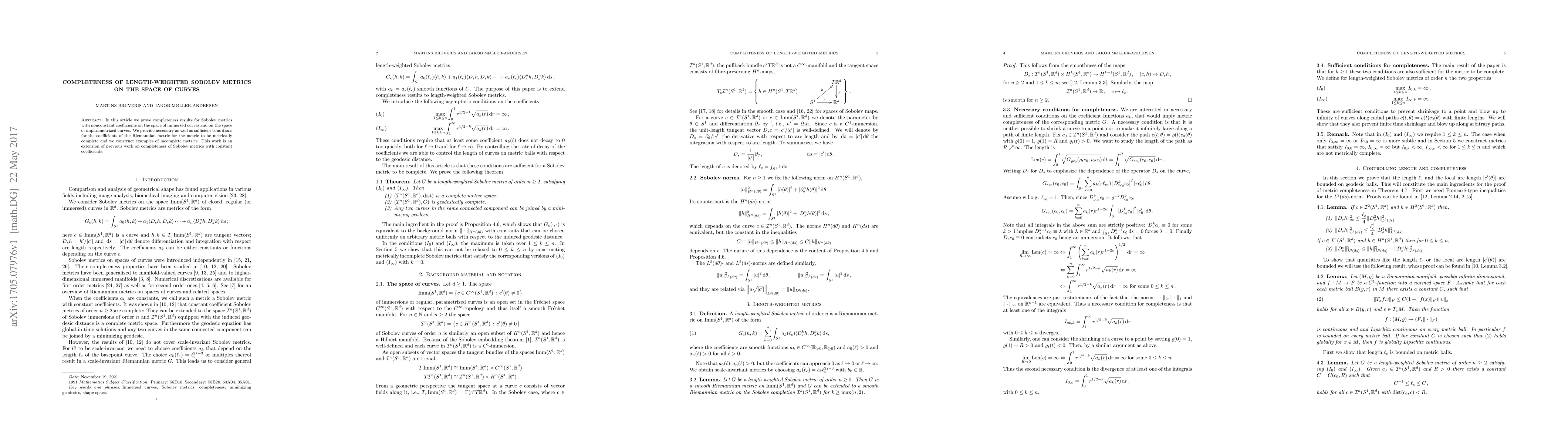 This paper proves completeness of length-weighted Sobolev metrics on spaces of immersed and unparametrized curves, establishing both necessary and sufficient conditions for metric completeness and providing examples of incomplete metrics. This extends prior research on metrics with constant coefficients.