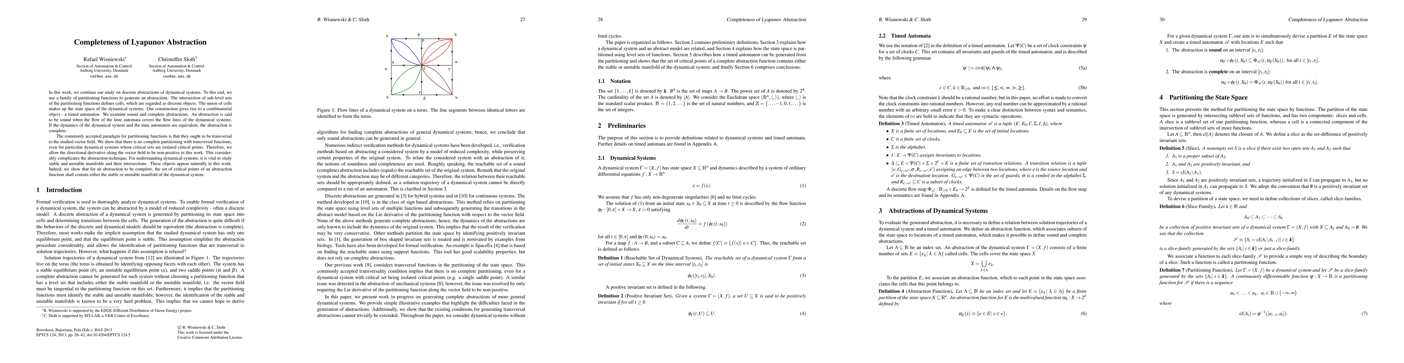 In this work, we continue our study on discrete abstractions of dynamical systems. To this end, we use a family of partitioning functions to generate an abstraction. The intersection of sub-level sets of the partitioning functions defines cells, which are regarded as discrete objects. The union of cells makes up the state space of the dynamical systems. Our construction gives rise to a combinatorial object - a timed automaton. We examine sound and complete abstractions. An abstraction is said to be sound when the flow of the time automata covers the flow lines of the dynamical systems. If the dynamics of the dynamical system and the time automaton are equivalent, the abstraction is complete. The commonly accepted paradigm for partitioning functions is that they ought to be transversal to the studied vector field. We show that there is no complete partitioning with transversal functions, even for particular dynamical systems whose critical sets are isolated critical points. Therefore, we allow the directional derivative along the vector field to be non-positive in this work. This considerably complicates the abstraction technique. For understanding dynamical systems, it is vital to study stable and unstable manifolds and their intersections. These objects appear naturally in this work. Indeed, we show that for an abstraction to be complete, the set of critical points of an abstraction function shall contain either the stable or unstable manifold of the dynamical system.