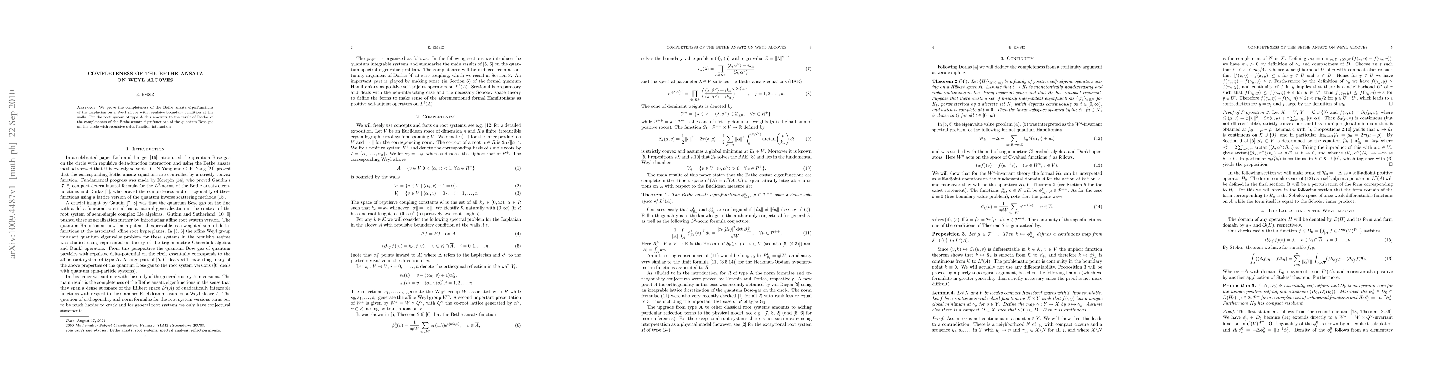 We prove the completeness of the Bethe ansatz eigenfunctions of the Laplacian on a Weyl alcove with repulsive boundary condition at the walls. For the root system of type A this amounts to the result of Dorlas of the completeness of the Bethe ansatz eigenfunctions of the quantum Bose gas on the circle with repulsive delta-function interaction.