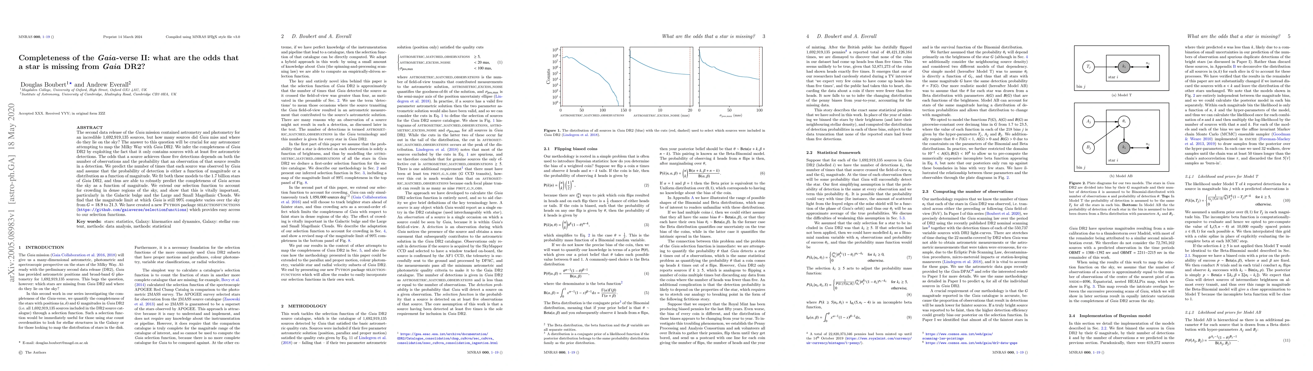 The second data release of the Gaia mission contained astrometry and photometry for an incredible 1,692,919,135 sources, but how many sources did Gaia miss and where do they lie on the sky? The answer to this question will be crucial for any astronomer attempting to map the Milky Way with Gaia DR2. We infer the completeness of Gaia DR2 by exploiting the fact that it only contains sources with at least five astrometric detections. The odds that a source achieves those five detections depends on both the number of observations and the probability that an observation of that source results in a detection. We predict the number of times that each source was observed by Gaia and assume that the probability of detection is either a function of magnitude or a distribution as a function of magnitude. We fit both these models to the 1.7 billion stars of Gaia DR2, and thus are able to robustly predict the completeness of Gaia across the sky as a function of magnitude. We extend our selection function to account for crowding in dense regions of the sky, and show that this is vitally important, particularly in the Galactic bulge and the Large and Small Magellanic Clouds. We find that the magnitude limit at which Gaia is still 99% complete varies over the sky from $G=18.9$ to $21.3$. We have created a new Python package selectionfunctions (https://github.com/gaiaverse/selectionfunctions) which provides easy access to our selection functions.