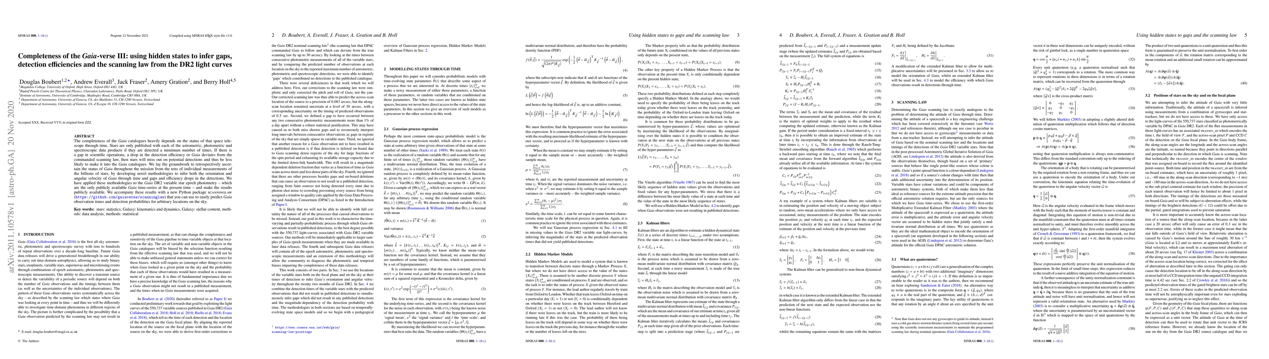 The completeness of the Gaia catalogues heavily depends on the status of that space telescope through time. Stars are only published with each of the astrometric, photometric and spectroscopic data products if they are detected a minimum number of times. If there is a gap in scientific operations, a drop in the detection efficiency or Gaia deviates from the commanded scanning law, then stars will miss out on potential detections and thus be less likely to make it into the Gaia catalogues. We lay the groundwork to retrospectively ascertain the status of Gaia throughout the mission from the tens of individual measurements of the billions of stars, by developing novel methodologies to infer both the orientation and angular velocity of Gaia through time and gaps and efficiency drops in the detections. We have applied these methodologies to the Gaia DR2 variable star epoch photometry -- which are the only publicly available Gaia time-series at the present time -- and make the results publicly available. We accompany these results with a new Python package scanninglaw (https://github.com/gaiaverse/scanninglaw) that you can use to easily predict Gaia observation times and detection probabilities for arbitrary locations on the sky.
