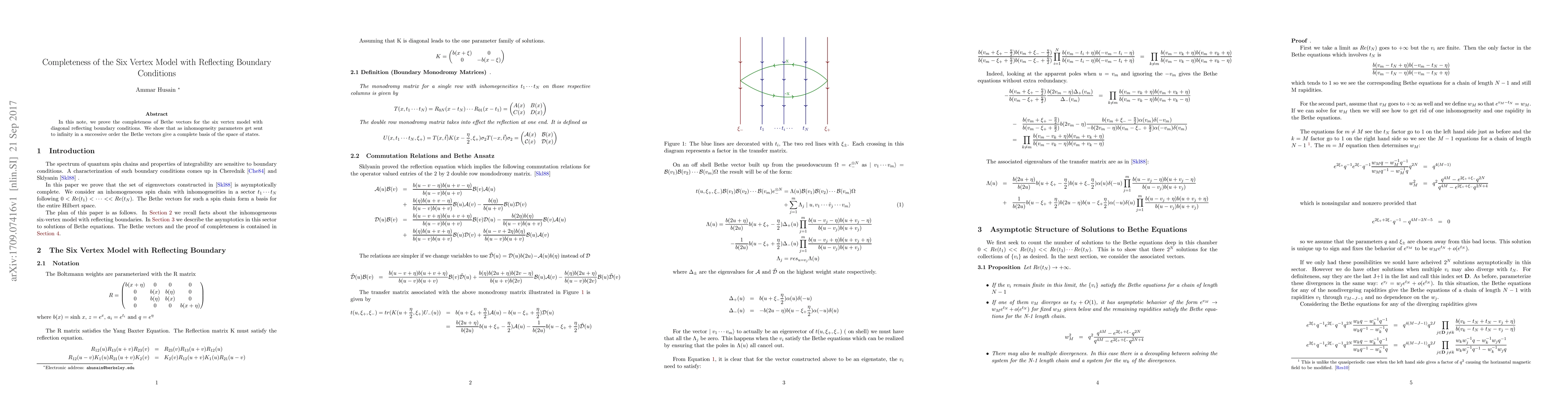 Researchers prove the completeness of Bethe vectors for the six vertex model with reflecting boundary conditions as inhomogeneity parameters approach infinity, demonstrating a complete basis of states.