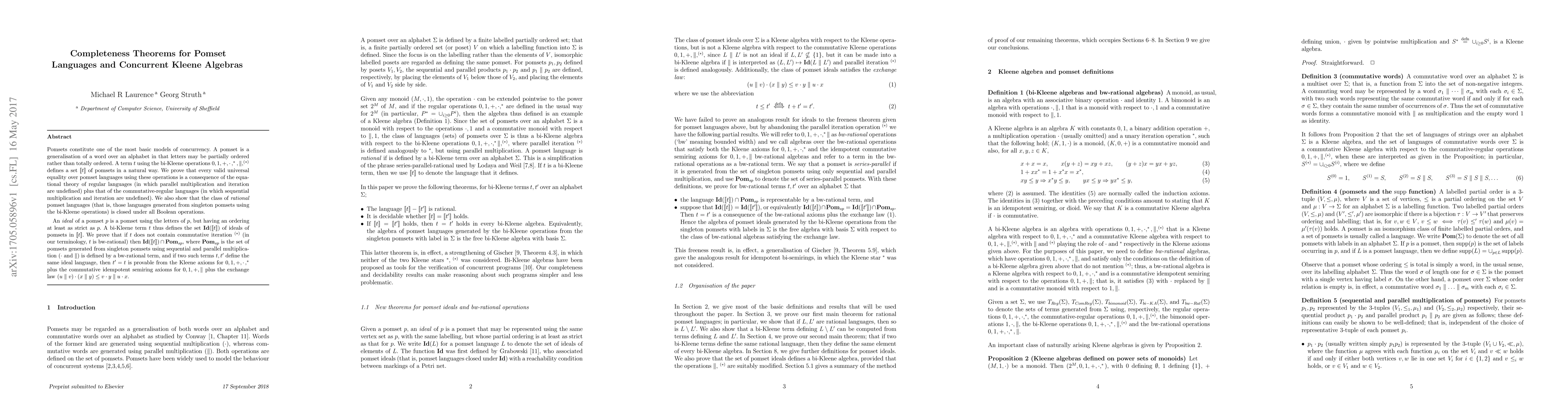 This paper proves completeness theorems for pomset languages and concurrent Kleene algebras, showing that universal equalities over these languages are consequences of the equational theory of regular and commutative-regular languages. It also demonstrates the closure of rational pomset languages under Boolean operations and establishes conditions for the characterization of ideal pomsets defined by bi-Kleene terms.
