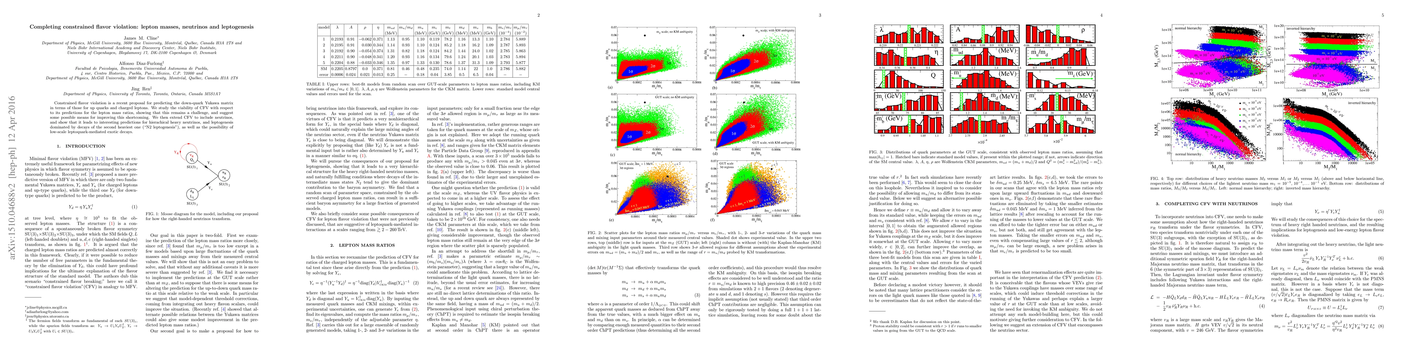 Constrained flavor violation is a recent proposal for predicting the down-quark Yukawa matrix in terms of those for up quarks and charged leptons. We study the viability of CFV with respect to its predictions for the lepton mass ratios, showing that this remains a challenge, and suggest some possible means for improving this shortcoming. We then extend CFV to include neutrinos, and show that it leads to interesting predictions for hierachical heavy neutrinos, and leptogenesis dominated by decays of the second heaviest one ("N2 leptogenesis"), as well as the possibility of low-scale leptoquark-mediated exotic decays.