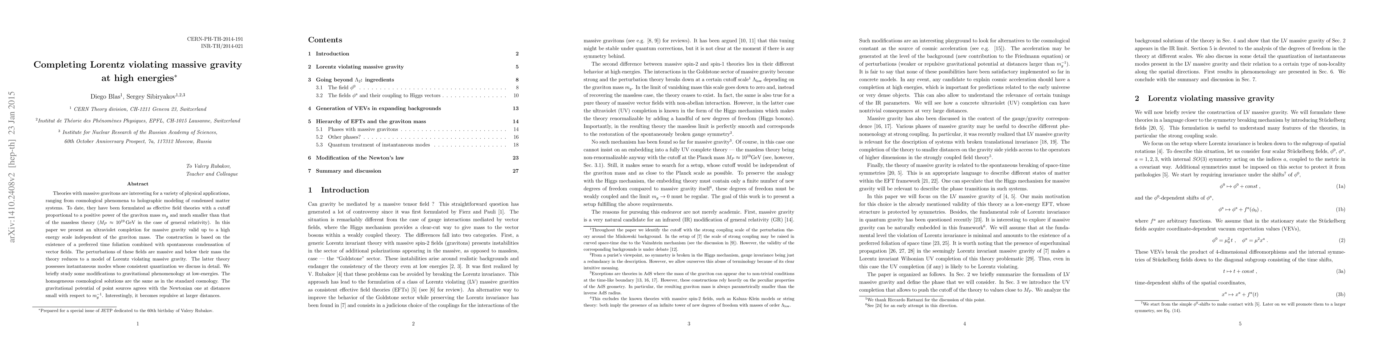 This paper proposes a high-energy completion for theories of massive gravity that avoids reliance on a low-energy cutoff, utilizing spontaneous condensation of vector fields and a preferred time foliation. The resulting model maintains Lorentz-violating features while preserving consistent quantization and standard cosmological solutions.