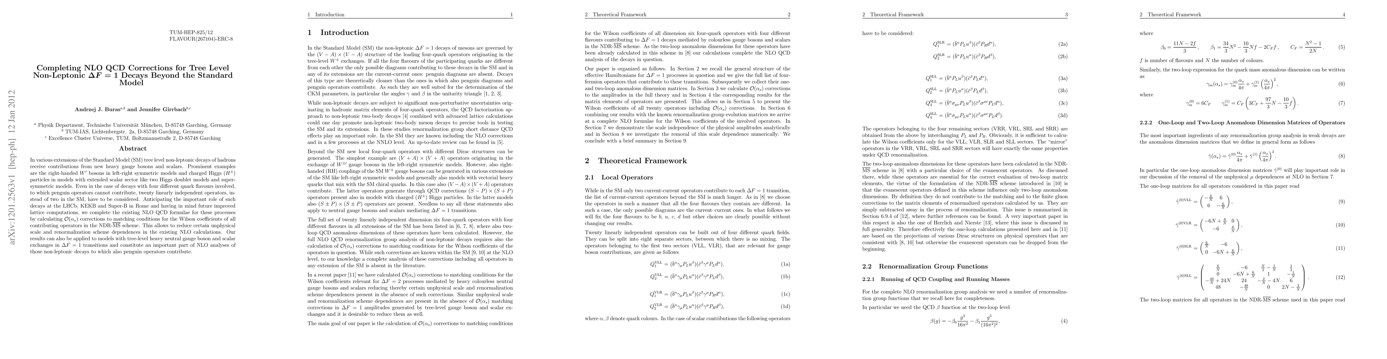 This paper completes the next-to-leading order (NLO) QCD corrections for tree-level non-leptonic Delta F = 1 decays beyond the Standard Model, calculating O(alpha_s) corrections for matching conditions in various extended models. The results reduce unphysical scale and renormalization scheme dependences, aiding future analyses of these decays at particle colliders.