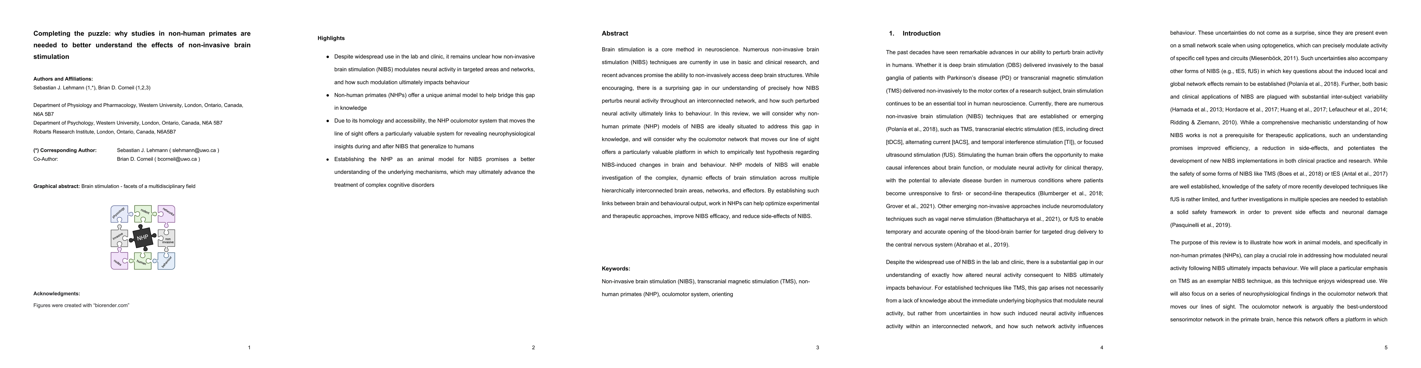 This paper argues that non-human primate studies are essential for understanding the effects of non-invasive brain stimulation (NIBS) due to their ability to investigate complex neural networks and their dynamic interactions, ultimately improving NIBS efficacy and reducing side effects. The oculomotor network is highlighted as a valuable model for testing hypotheses about NIBS-induced changes in brain and behavior.