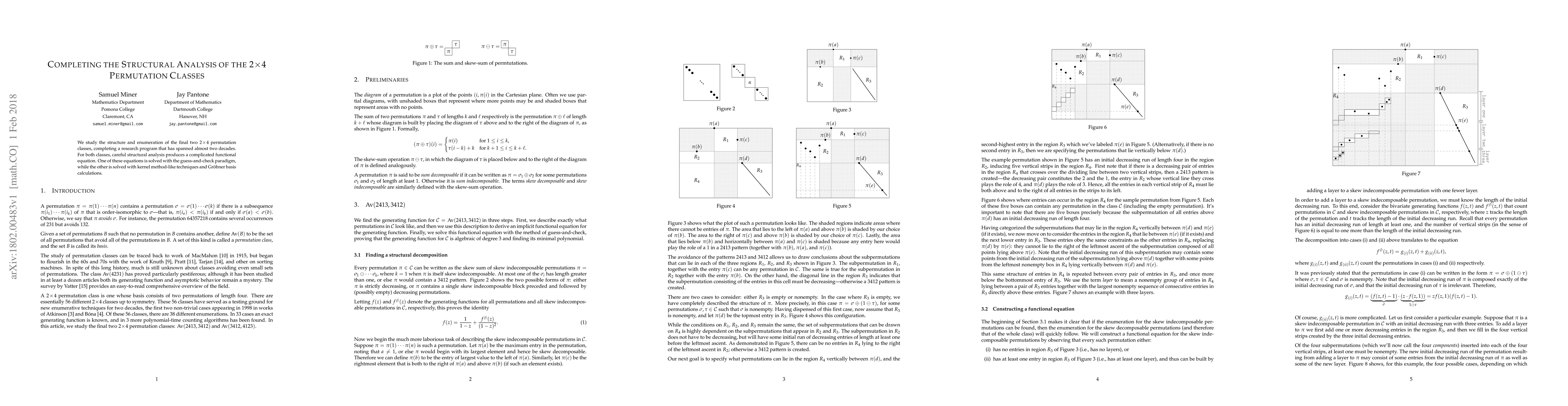 This research advances the state of understanding for 2x4 permutation classes by providing complete structural analysis and enumeration, employing a hybrid approach of guess-and-check and Gröbner basis calculations to solve complicated functional equations.