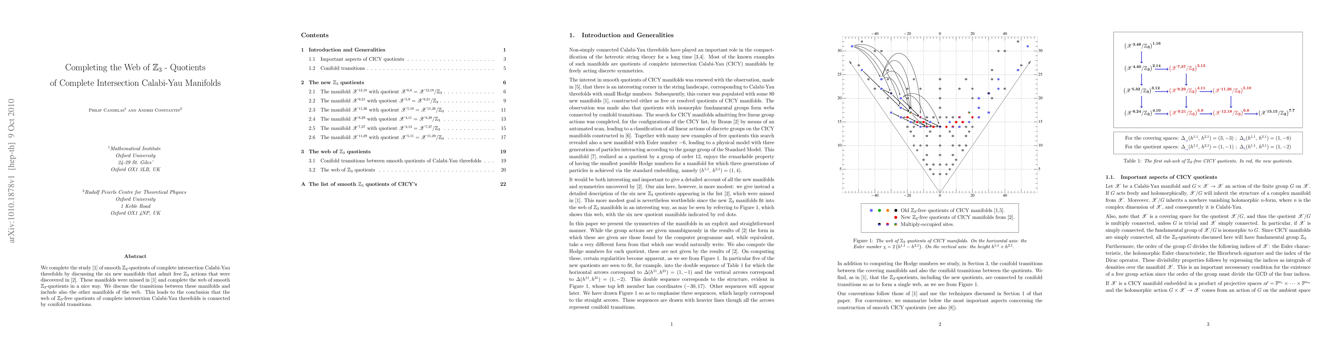We complete the study of smooth $Z_3$-quotients of complete intersection Calabi-Yau threefolds by discussing the six new manifolds that admit free $Z_3$ actions that were discovered discovered recently by Braun. These manifolds were missed in an earlier work and complete the web of smooth $Z_3$-quotients in a nice way. We discuss the transitions between these manifolds and include also the other manifolds of the web. This leads to the conclusion that the web of $Z_3$-free quotients of complete intersection Calabi-Yau threefolds is connected by conifold transitions.