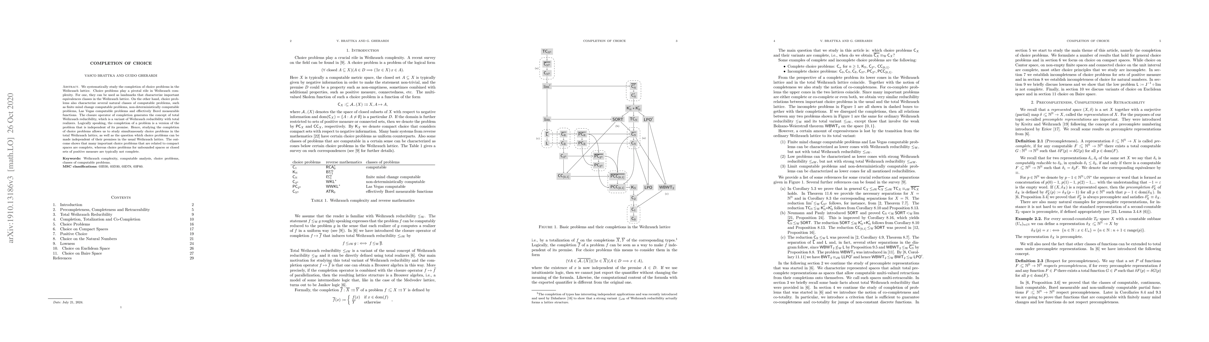 The completion of choice problems in the Weihrauch lattice reveals that many related compact space problems are complete, while those for unbounded spaces or closed sets of positive measure are typically not complete.