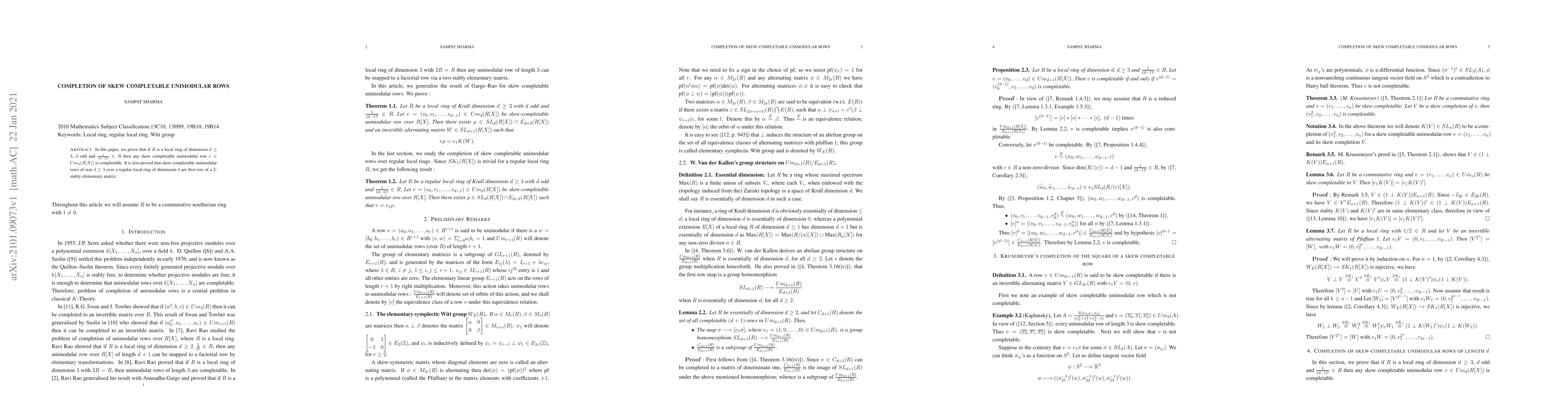 Summary: Skew completable unimodular rows of odd length can be completed over a polynomial extension of a local ring when the dimension of the local ring matches the length of the unimodular rows. This provides a condition for the completion of such rows in algebraic structures.