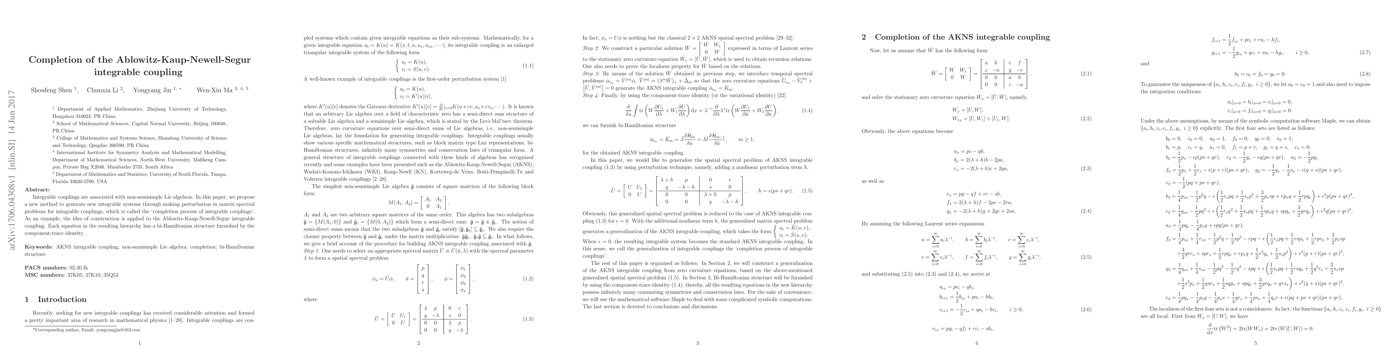 This paper introduces a new method to create integrable systems via perturbations in matrix spectral problems, termed the 'completion process of integrable couplings'. The method is exemplified by applying it to the Ablowitz-Kaup-Newell-Segur integrable coupling, resulting in a hierarchy of equations with a bi-Hamiltonian structure.