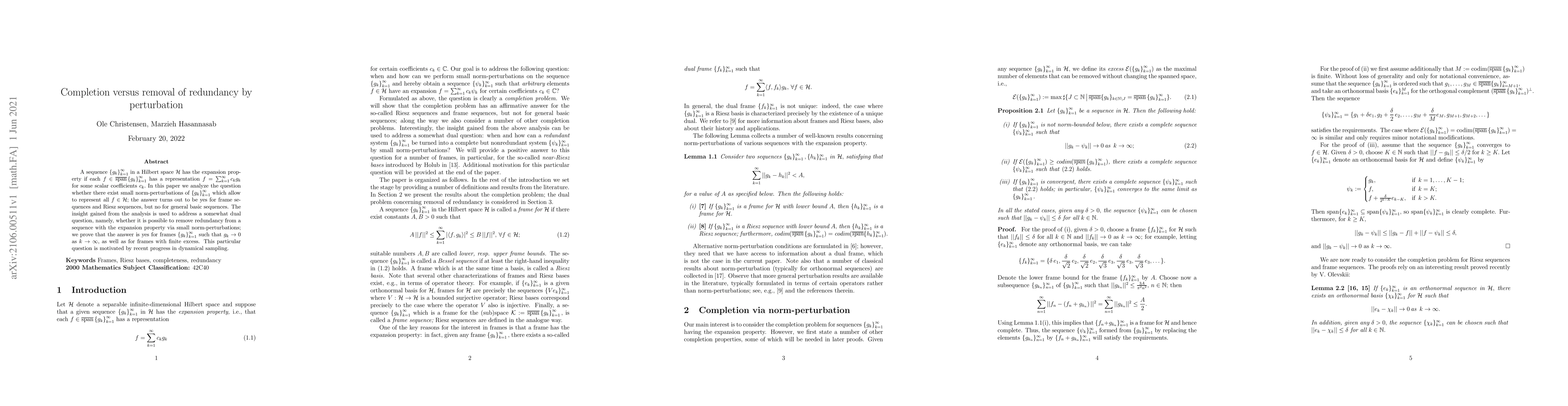 The paper investigates whether small norm-perturbations can reduce redundancy in a sequence with expansion property, finding that it is possible for frames and Riesz sequences but not general basic sequences, and also shows that such perturbations can remove redundancy from certain types of frames.