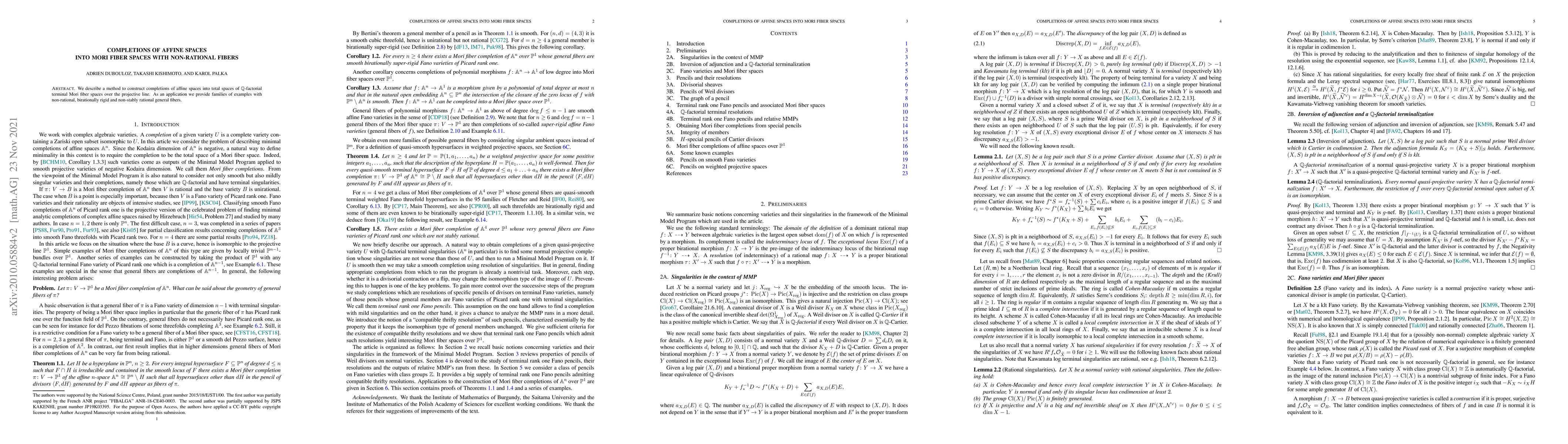 Summary: This paper presents a method to complete affine spaces into $\mathbb{Q}$-factorial terminal Mori fiber spaces over the projective line, illustrating the construction with examples of non-rational, birationally rigid, and non-stably rational general fibers.
